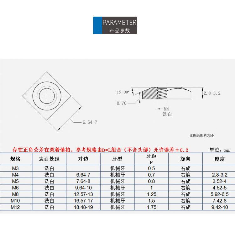 Tuerca cuadrada de acero inoxidable 304 M3M4M5M6M8M10M12, tuerca cuadrada DIN557