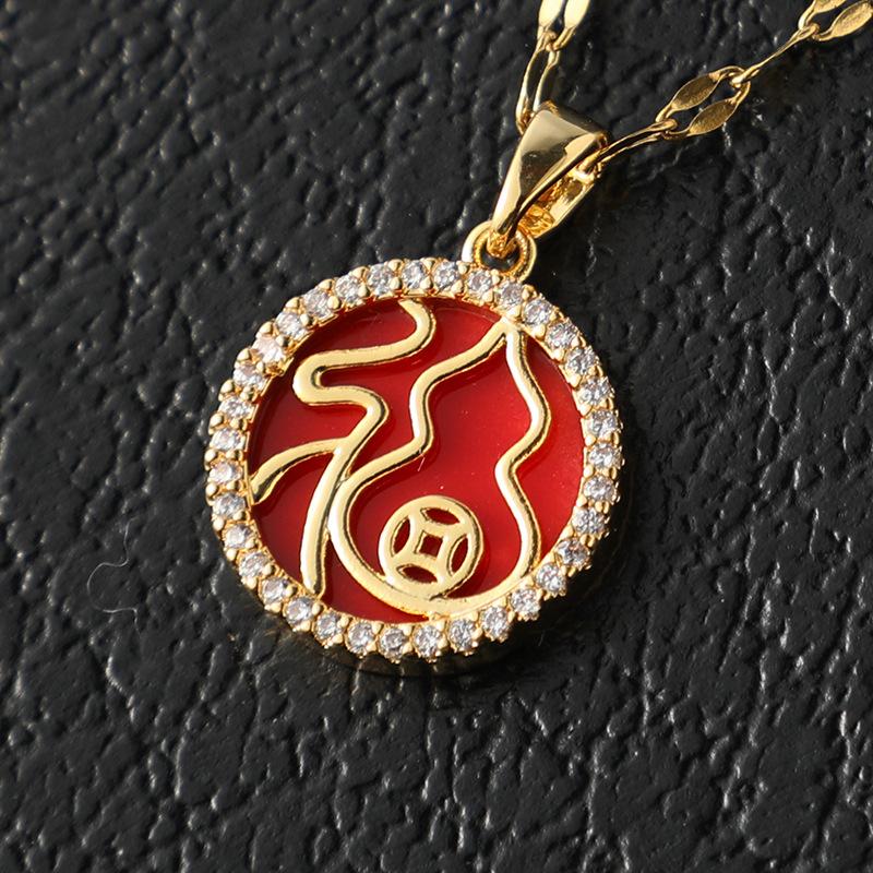 | | Collar de acero de titanio con diseño de conejo del zodíaco Fulu de jade de imitación de estilo chino, colgante retro de cobre chapado en oro para mujer, cadena de clavícula, joyería al por mayor | | ¥7.808425 artículos vendidos |