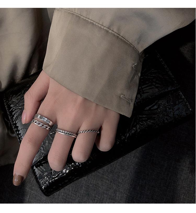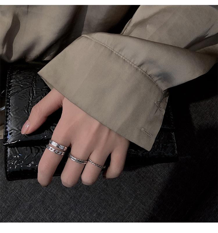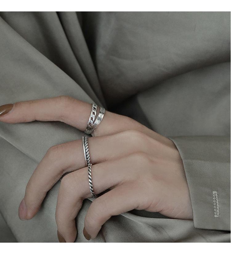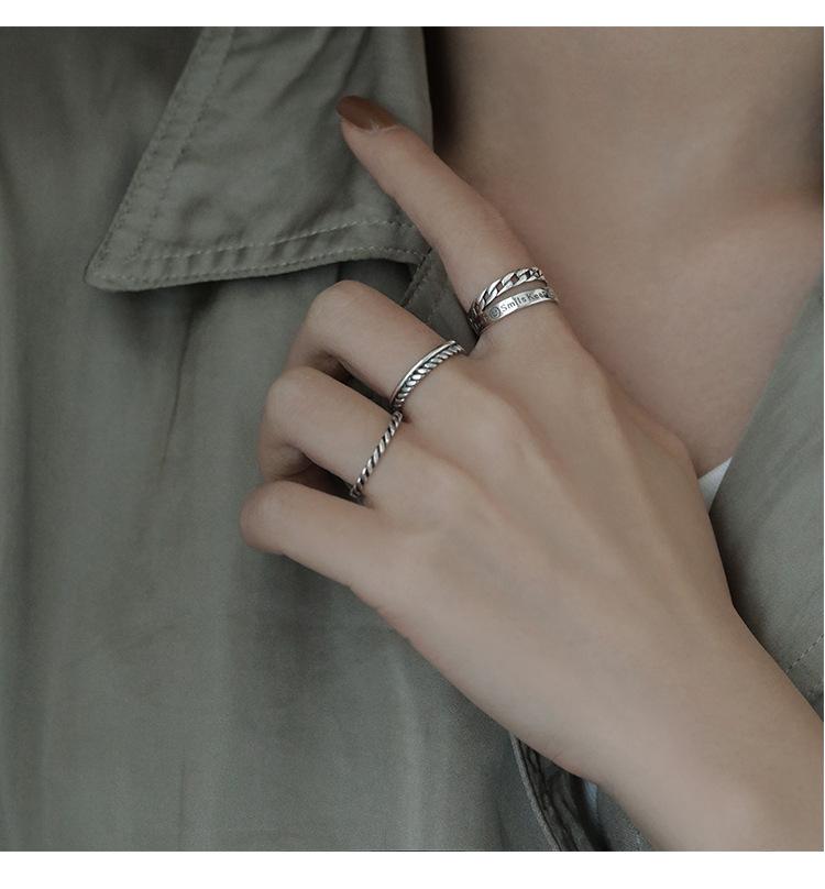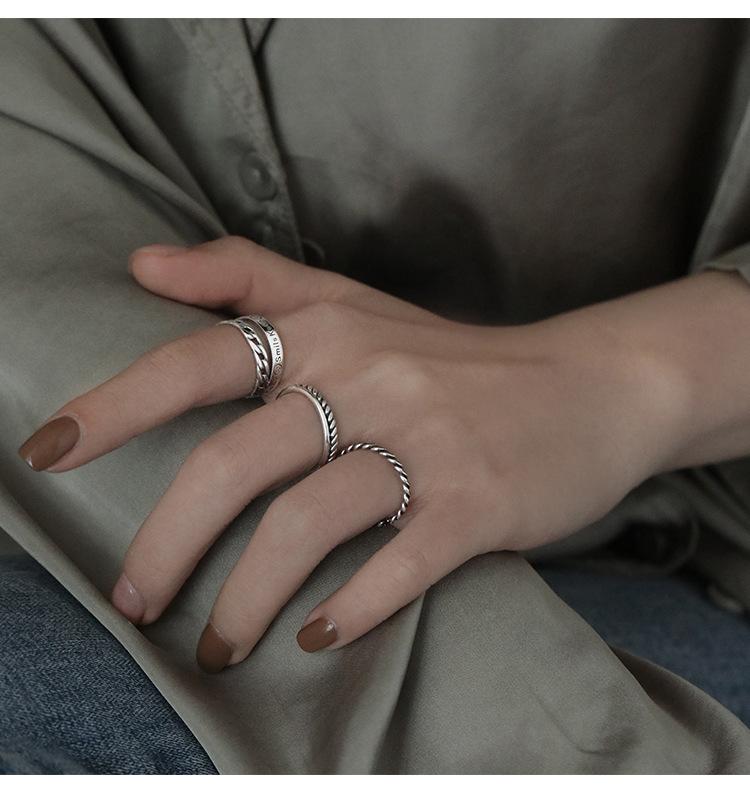 Anillo Trenzado de Doble Capa de Plata S925 Estilo Coreano para Mujer, Anillo Fino Vintage Simple Abierto para el Dedo, Moda Europea y Americana Apilable para el Dedo, Anillo de Comida