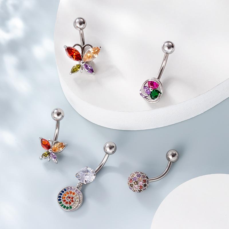 nombre del producto | Barra de acero inoxidable de 1.6X10mm circonita de color mariposa ombliguera joyería para piercing de ombligo comercio exterior europeo y americano |