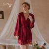 2020ebay Amazon lencería sexy caliente cuatro colores malla encaje pijama bata cinturón