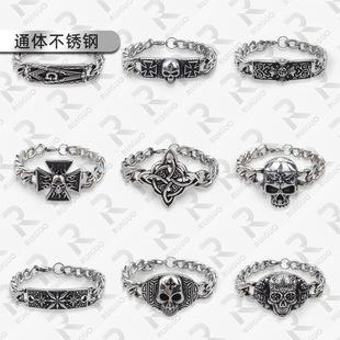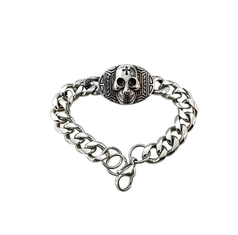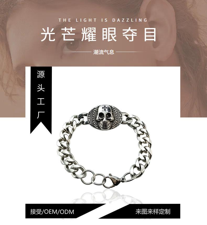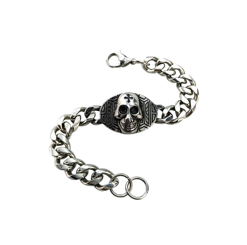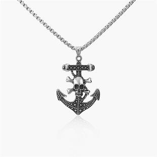 Collar de acero inoxidable con ancla de calavera de una pieza europea y americana, joyería de colgante dominante para hombre, cadena de perlas cuadradas, comercio exterior |