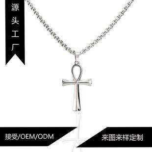Collar de acero de titanio simple transfronterizo para hombres y mujeres, colgante con símbolo de la vida del antiguo Egipto, cruz ankh de acero inoxidable, accesorios |
