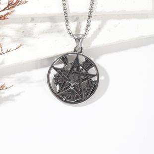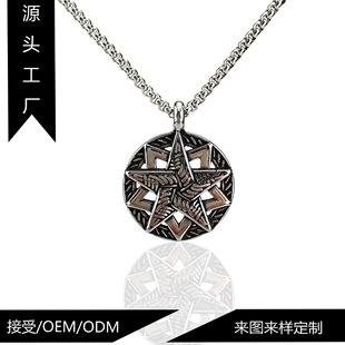 Suministro transfronterizo europeo y americano collar de acero inoxidable retro de estrella de cinco puntas para hombre colgante moderno de calle hip-hop accesorios |