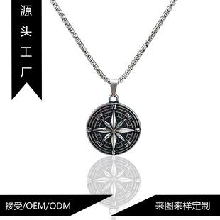 Collar de brújula popular transfronterizo europeo y americano personalizado para hombre acero inoxidable versátil estilo retro cadena de perlas al por mayor |