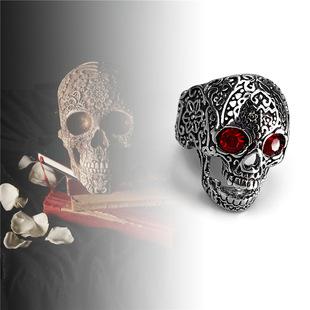 Exagerado Piratas del Caribe Rubí Runa Misteriosa Calavera Retro Acero Titanio Acero Inoxidable Anillo de Halloween |