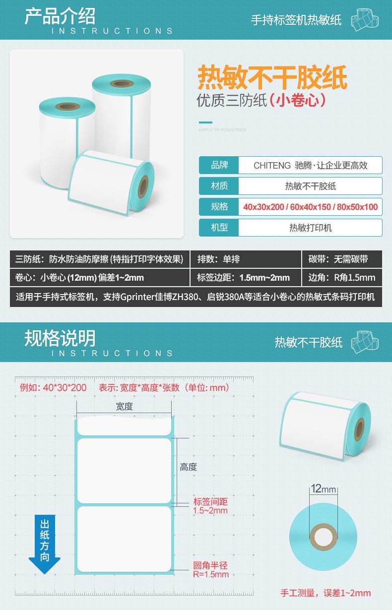 Papel térmico de rollo pequeño Chiteng para impresora portátil, papel de etiquetas especial, etiqueta adhesiva térmica de tres capas