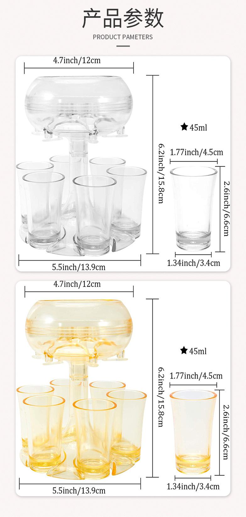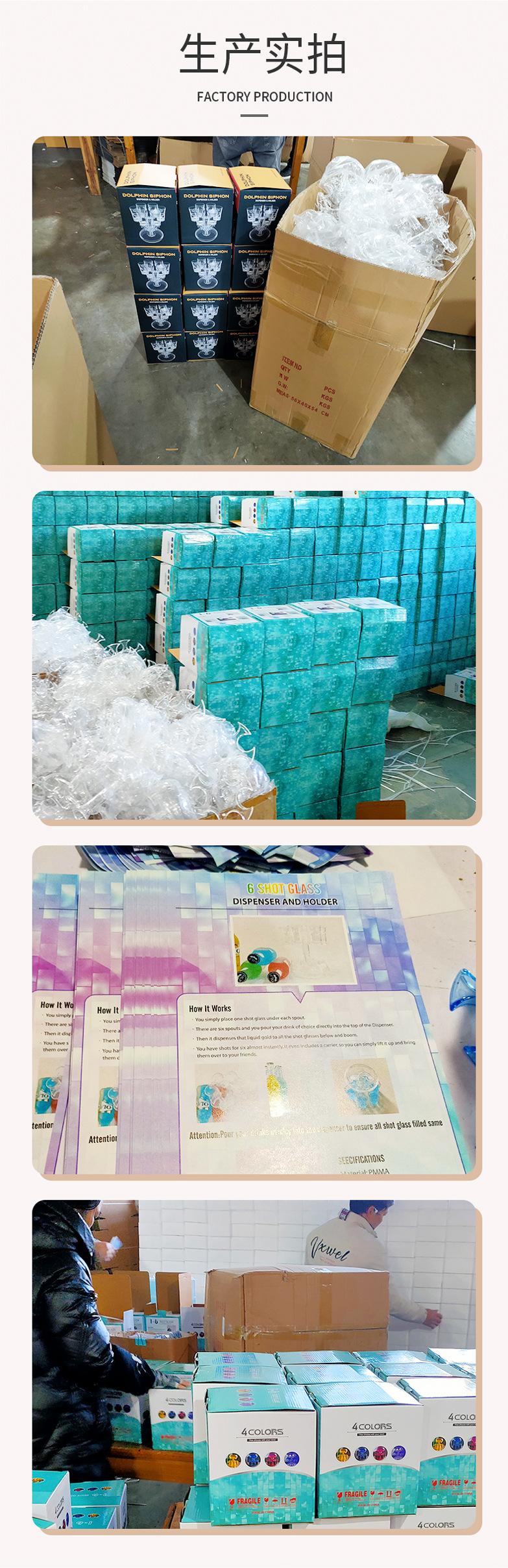 MÁS Precio al por mayor de 33 yuanes por menos de 1,000 juegos, 1 juego en una caja de espuma (1 juego: 1 dispensador de vino + 6 vasos de chupito, 6 tapones blandos de silicona, 1 módulo fotoeléctrico (pegado en la base), 1 manual de instrucciones en inglés como estándar) )