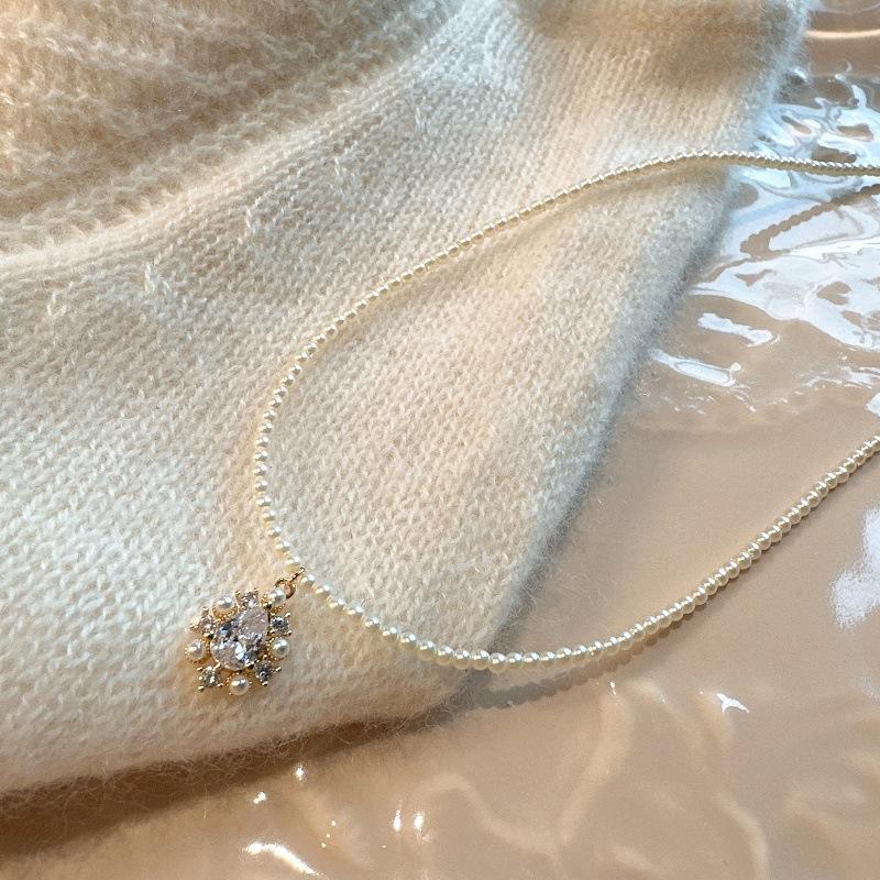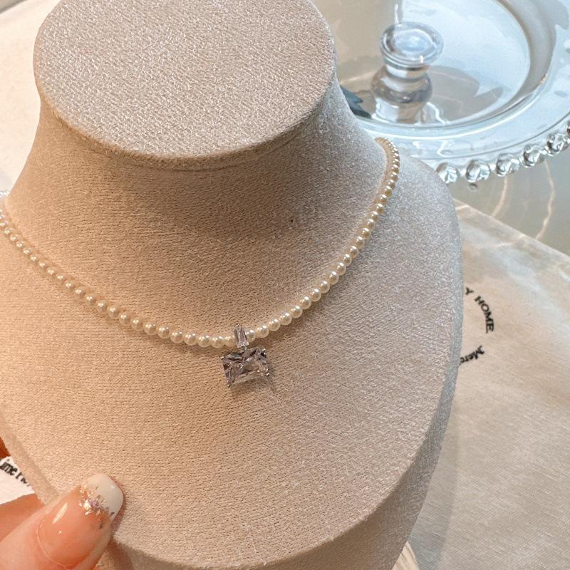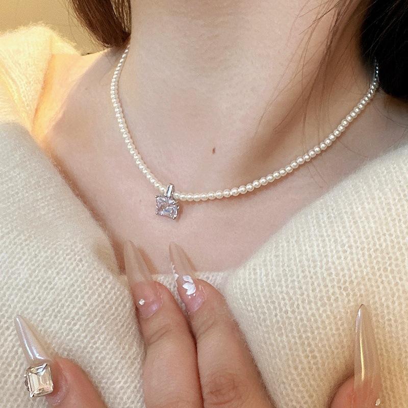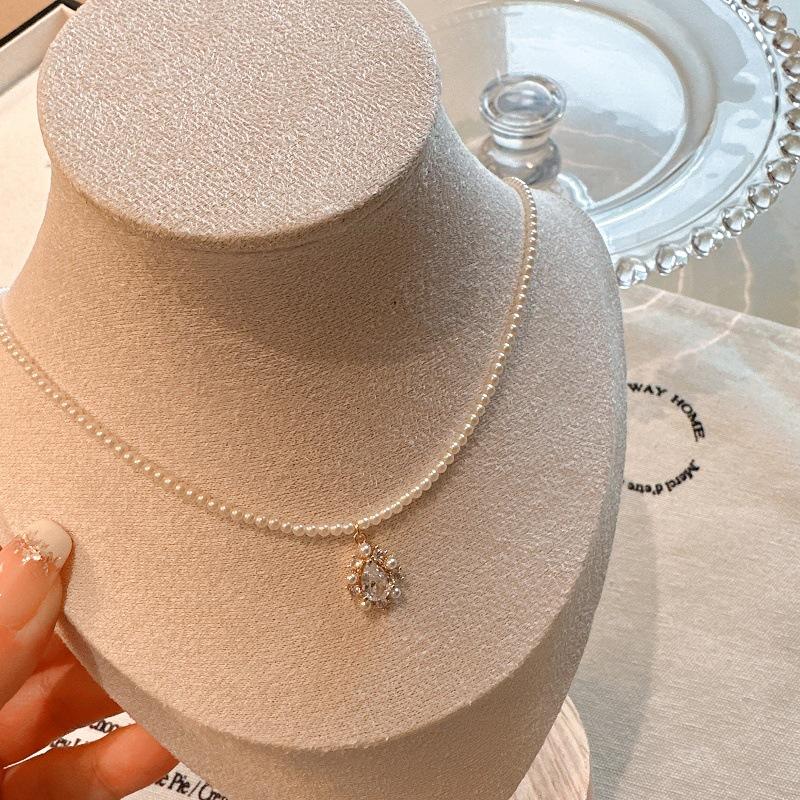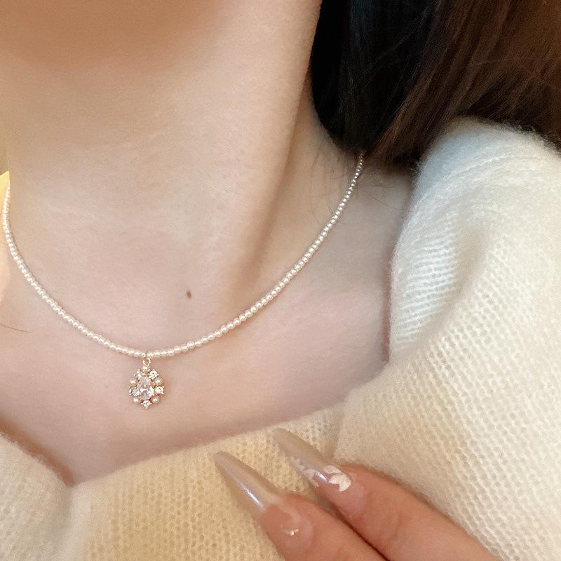 Collar de Perlas de Alta Gama de Corea del Sur para Mujer, Diseño Nicho de Lujo Ligero, Cadena para Clavícula, Popular en Internet, Nuevo Estilo, Elegante Cadena de Cuello con Pedrería