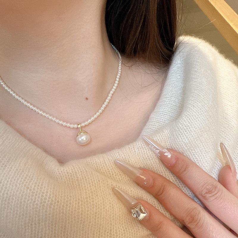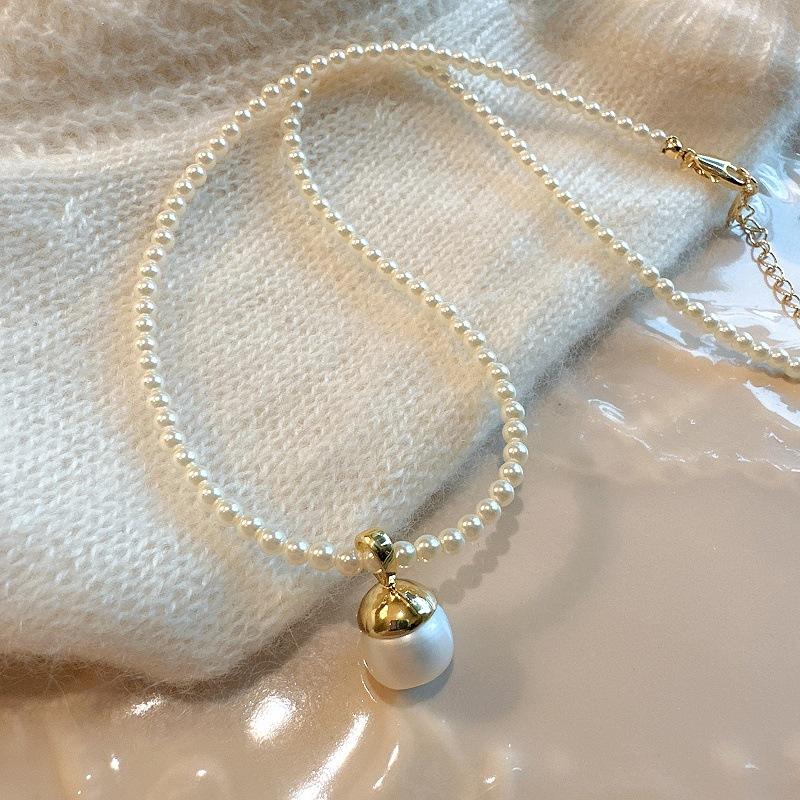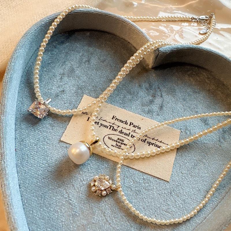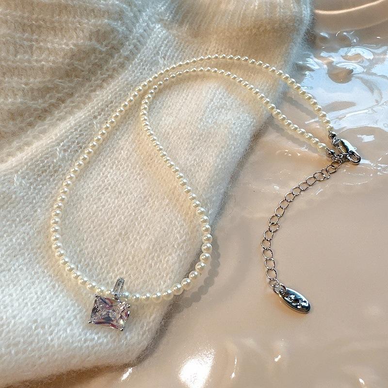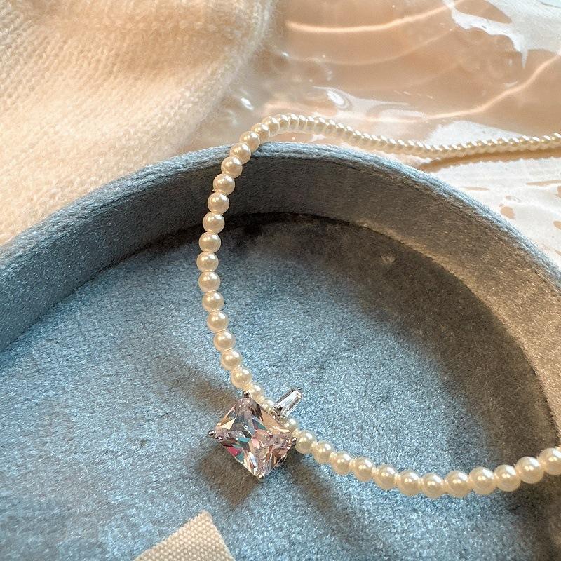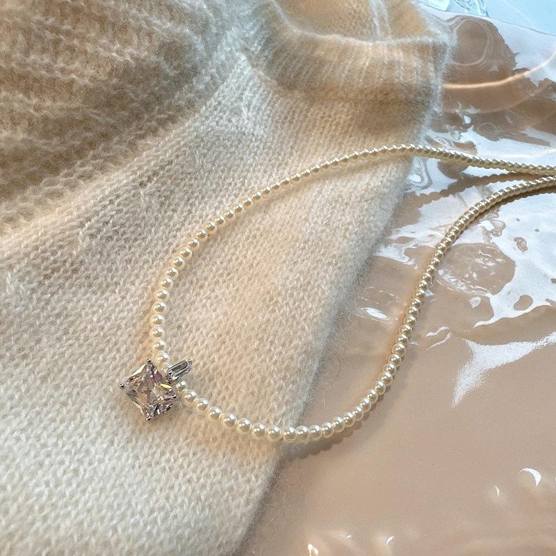 Collar de Perlas de Alta Gama de Corea del Sur para Mujer, Diseño Nicho de Lujo Ligero, Cadena para Clavícula, Popular en Internet, Nuevo Estilo, Elegante Cadena de Cuello con Pedrería