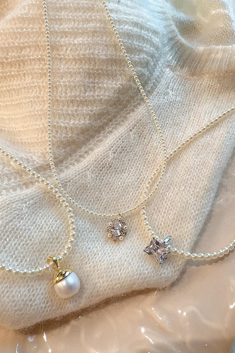 square zircon section, Freshwater pearl, water drop style