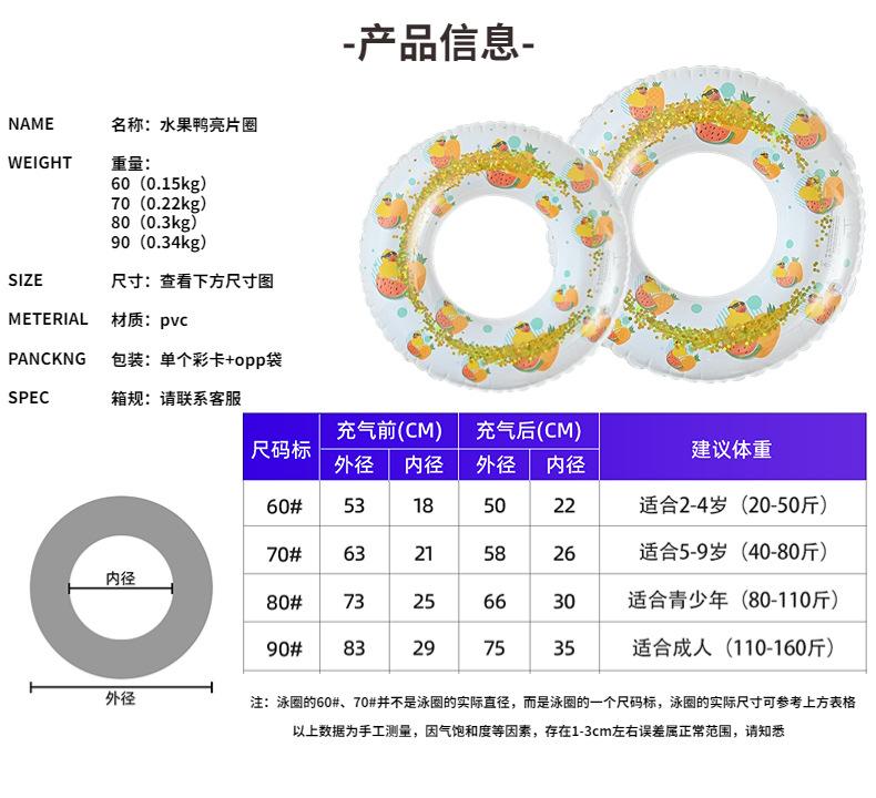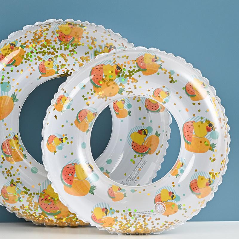 Venta al por mayor al por mayor de red roja gruesa con lentejuelas, fruta, pato, anillo de natación inflable para niños, anillo de natación para axila, equipo de natación