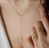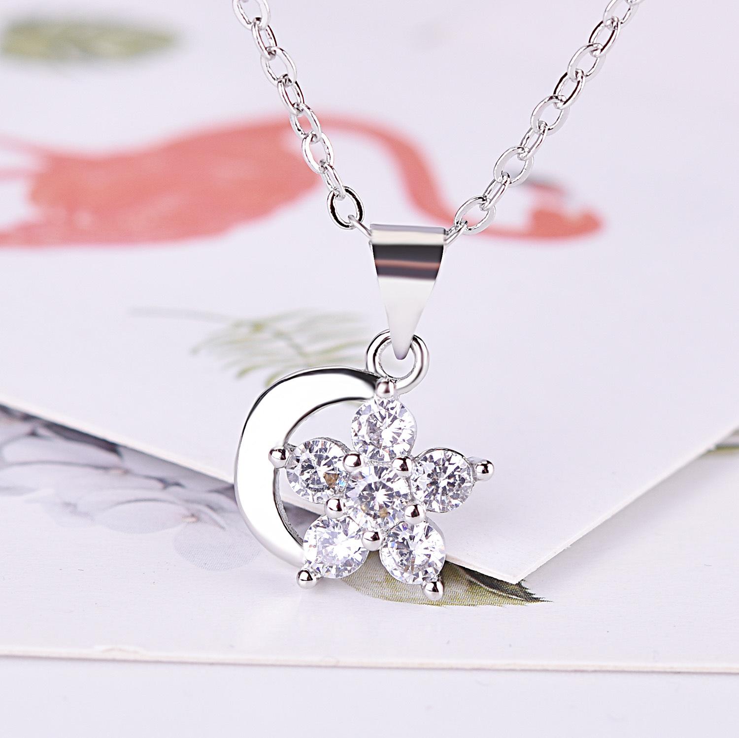 Joyería de moda coreana, collar de estrella y luna para mujer, colgante de luna de diamante, pequeña cadena de clavícula de estrella de cinco puntas fresca, venta al por mayor