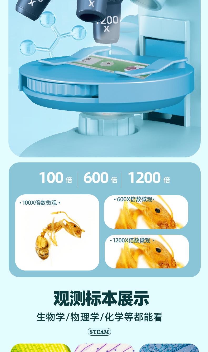 Calibración de microscopio para niños 1200 veces experimento científico lupa rompecabezas ciencia y educación STEM estudiantes de primaria juguete equipo