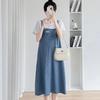Vestido de maternidad, vestido de verano 2023, nueva moda, suelto, de longitud media, con tirantes, vestido de maternidad con costuras falsas de dos piezas