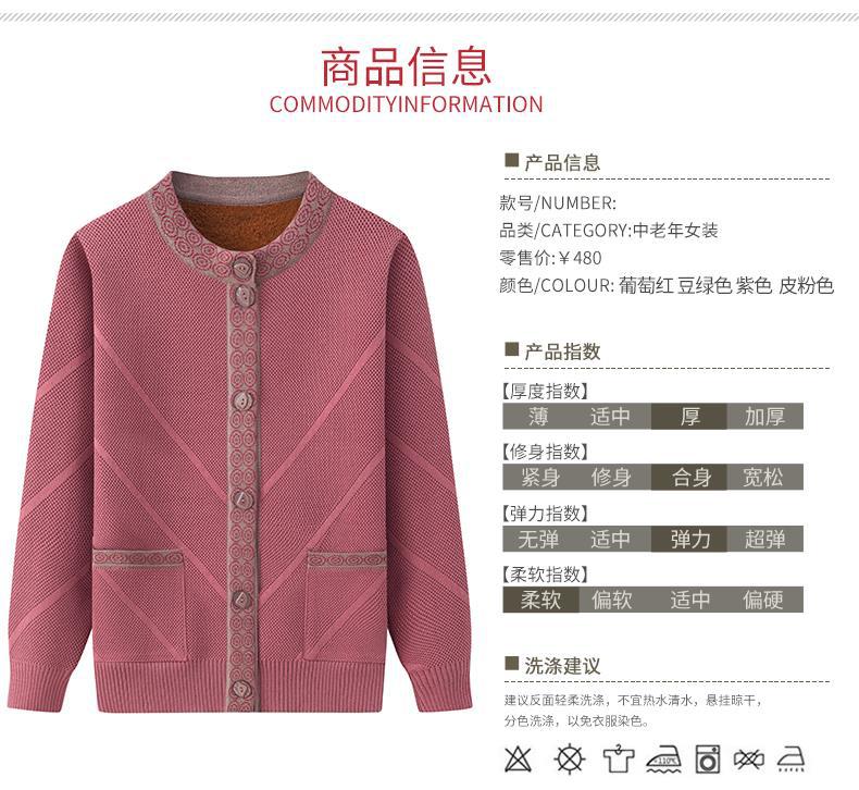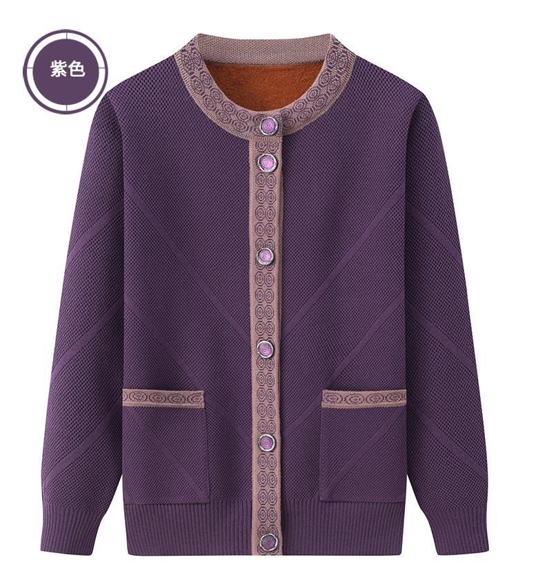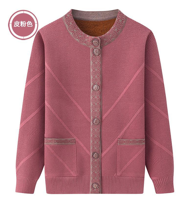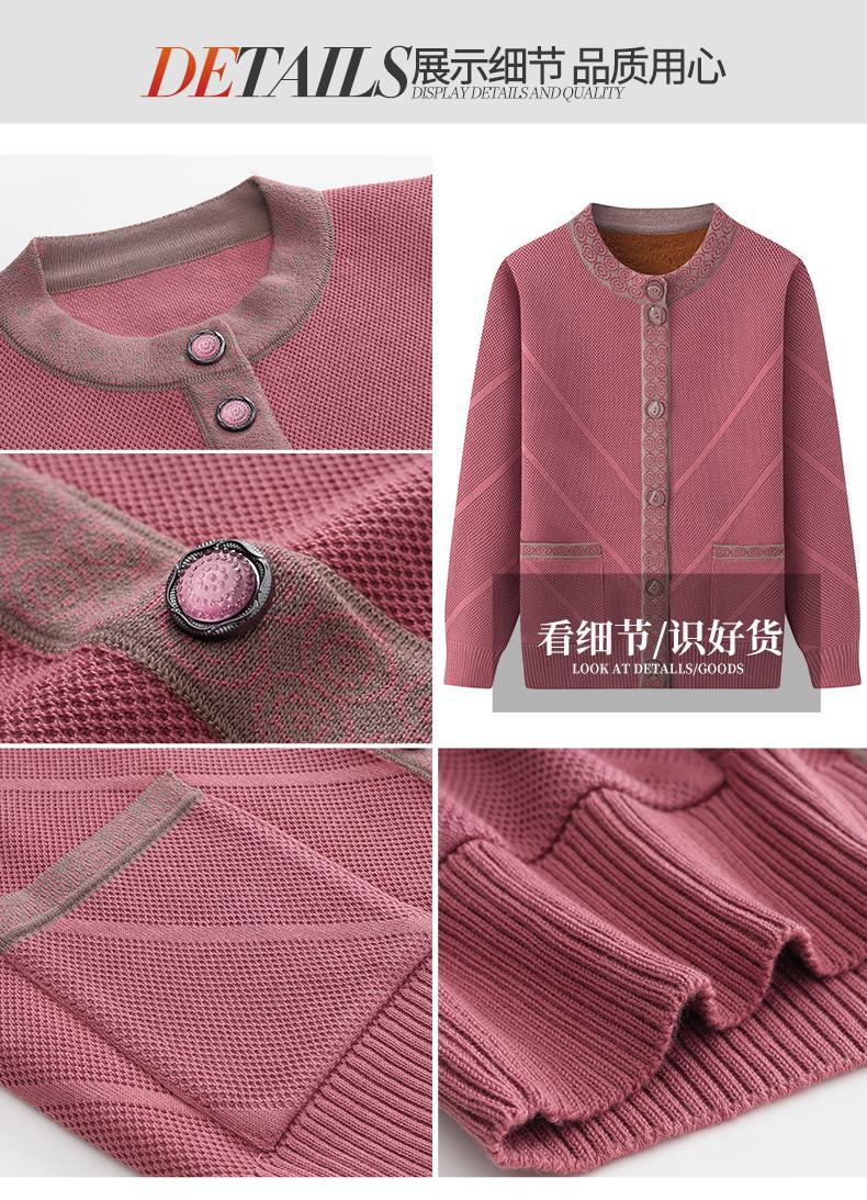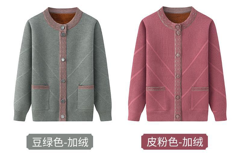 Abrigo de Primavera y Otoño para Madre, Abrigo de Invierno para Abuela, Suéter de Terciopelo, Cárdigan Tejido Grueso para Mujeres de Mediana Edad y Ancianas