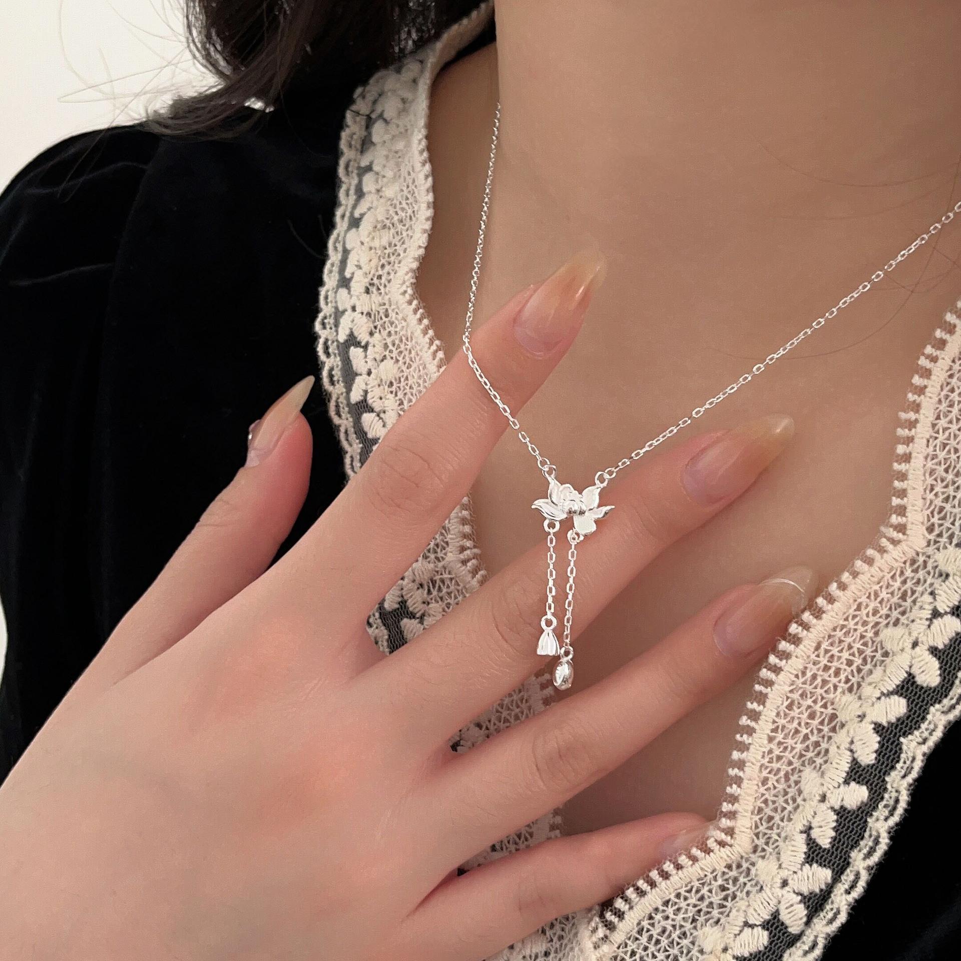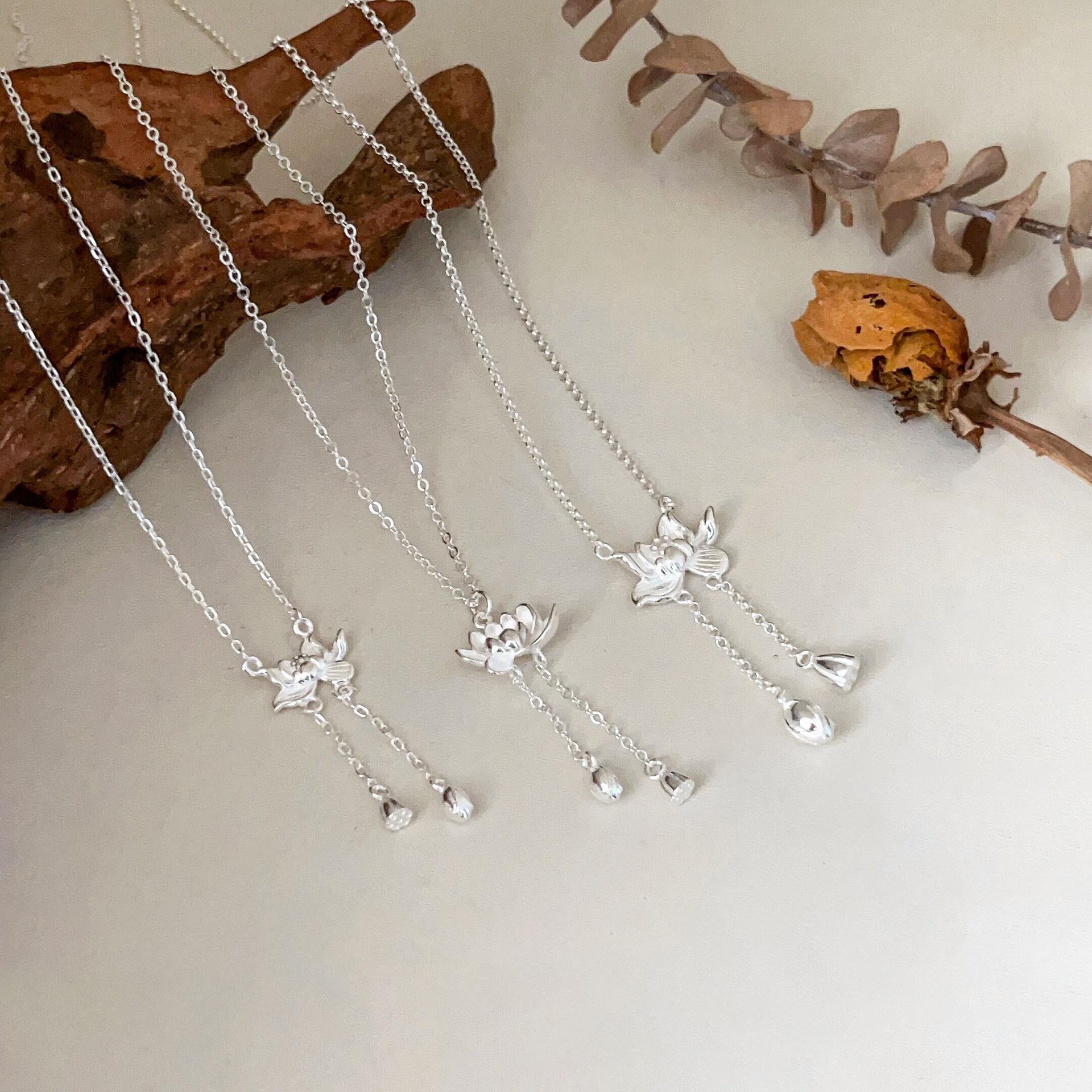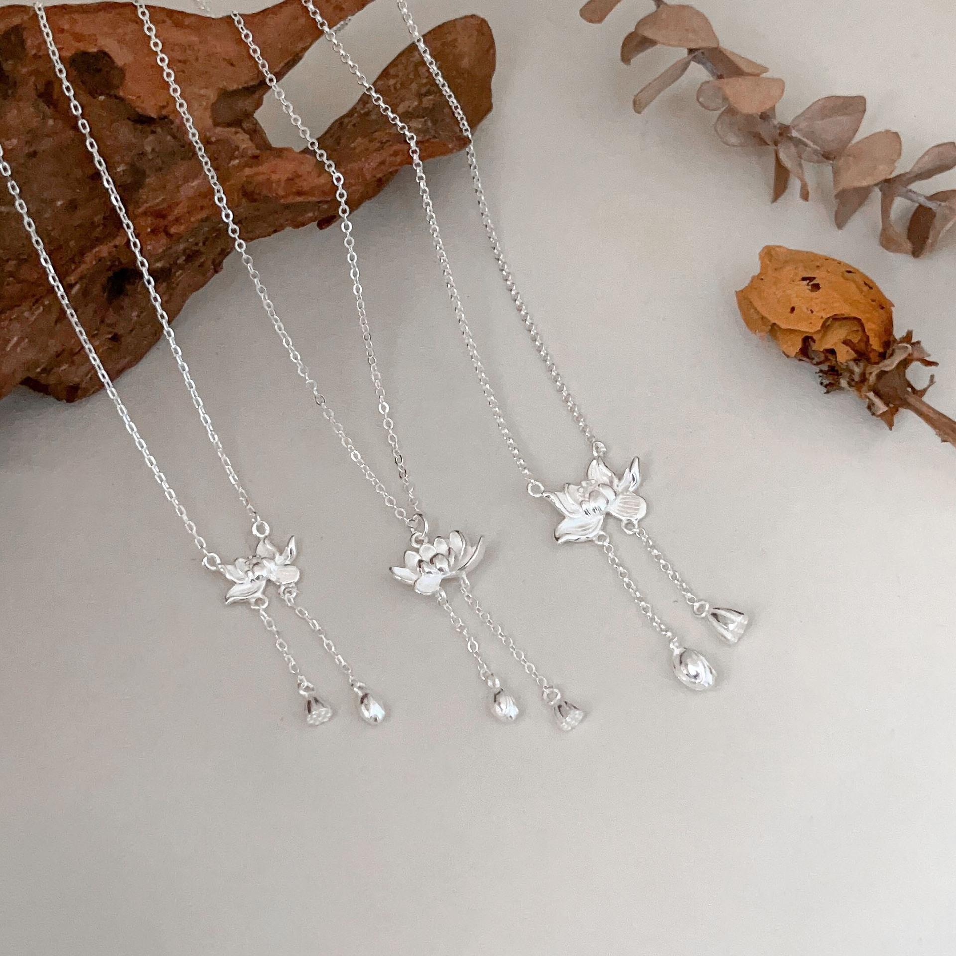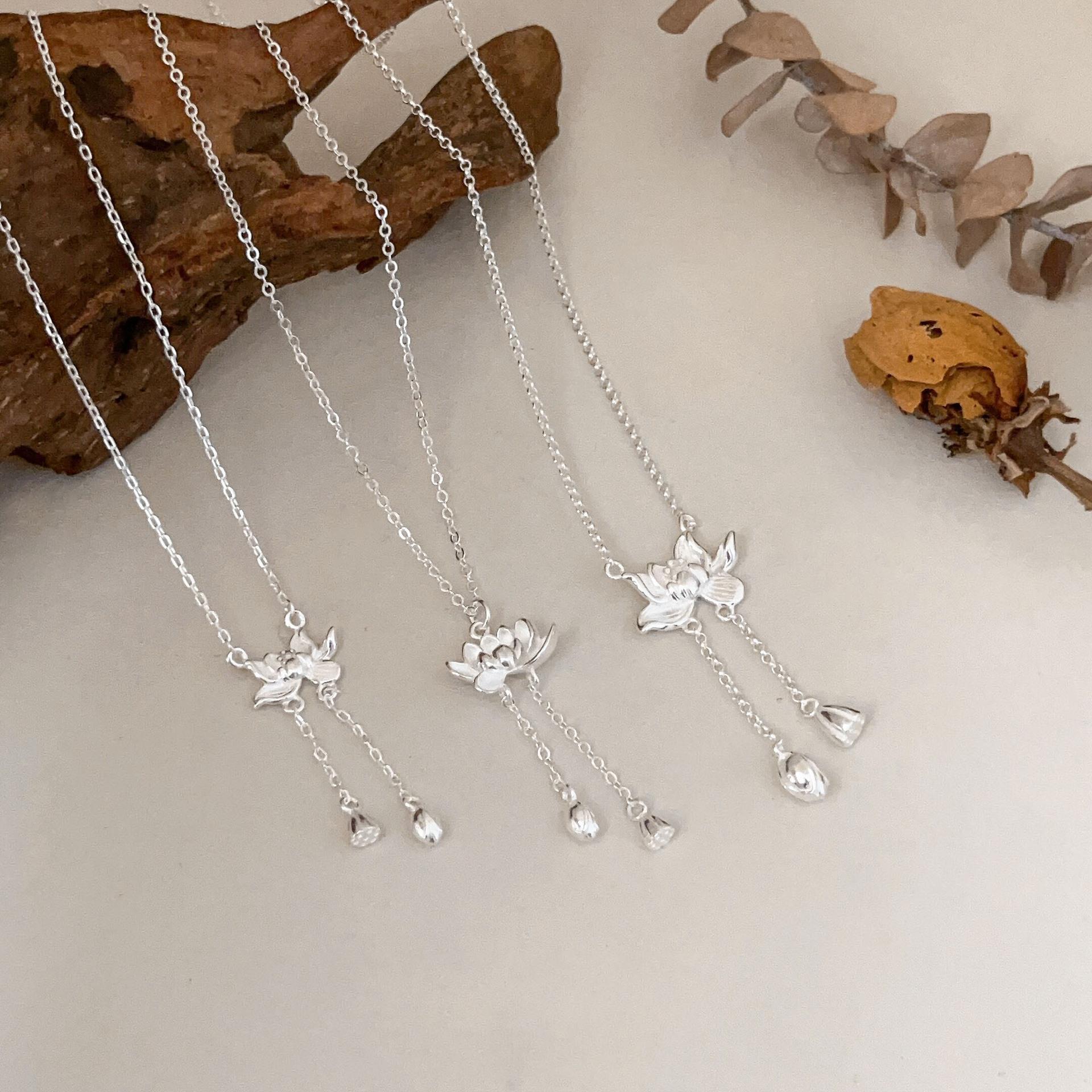 Collar de plata de ley s925 Ruitai con cadena de clavícula de loto de dos mundos, estilo étnico, colección de moda nacional, collar de plata lisa para mujer