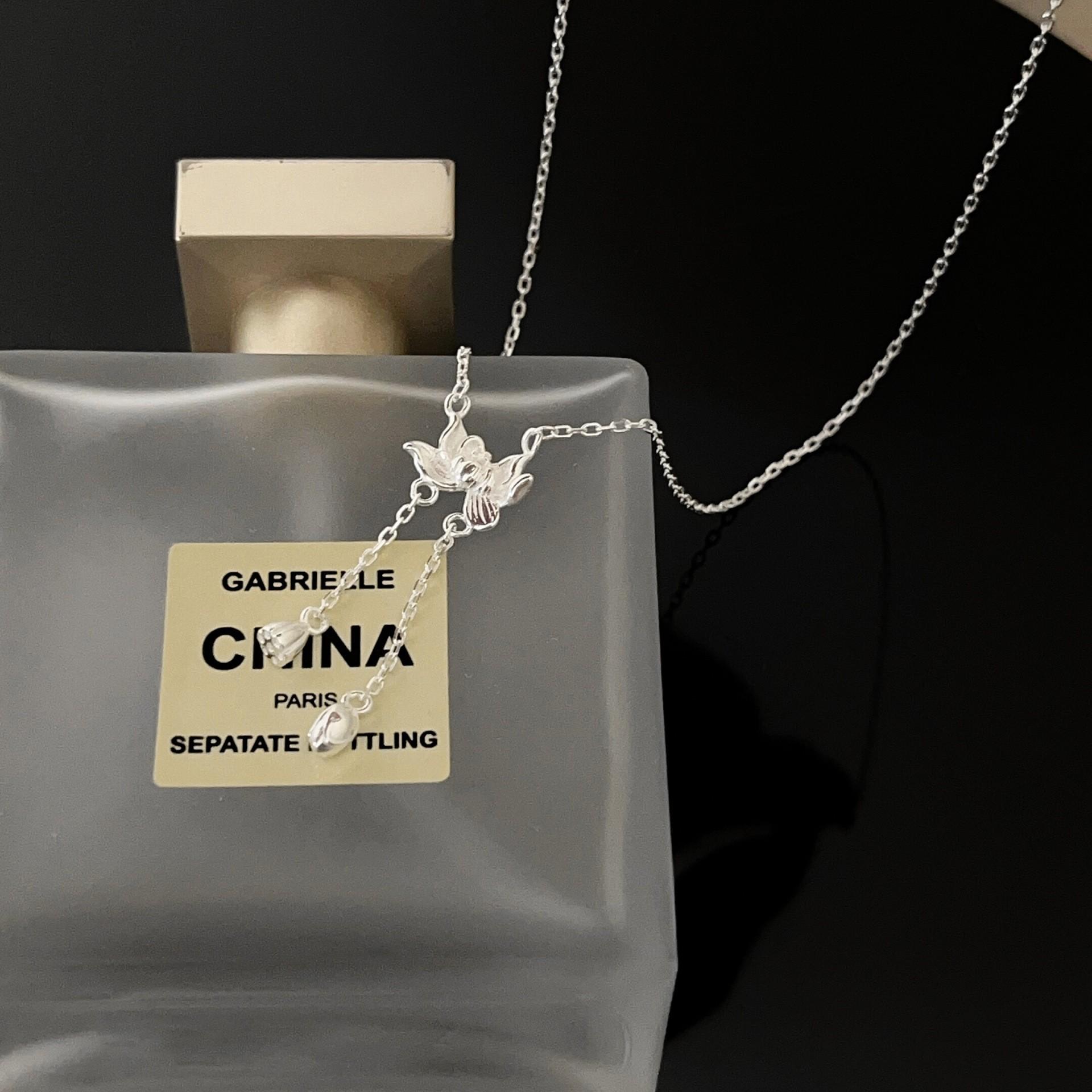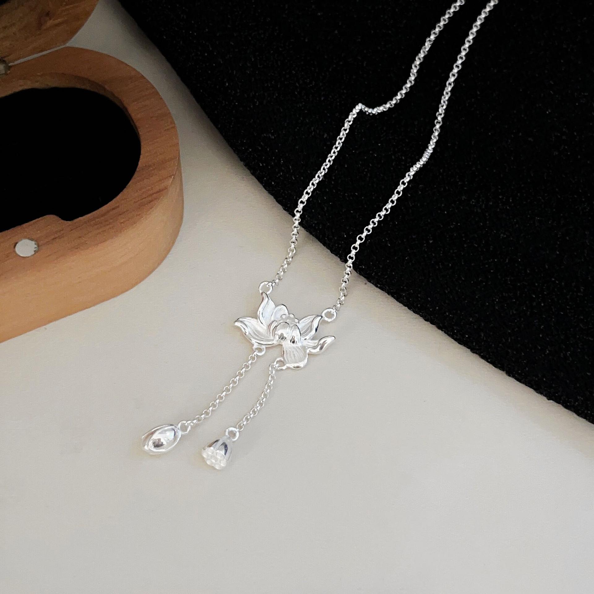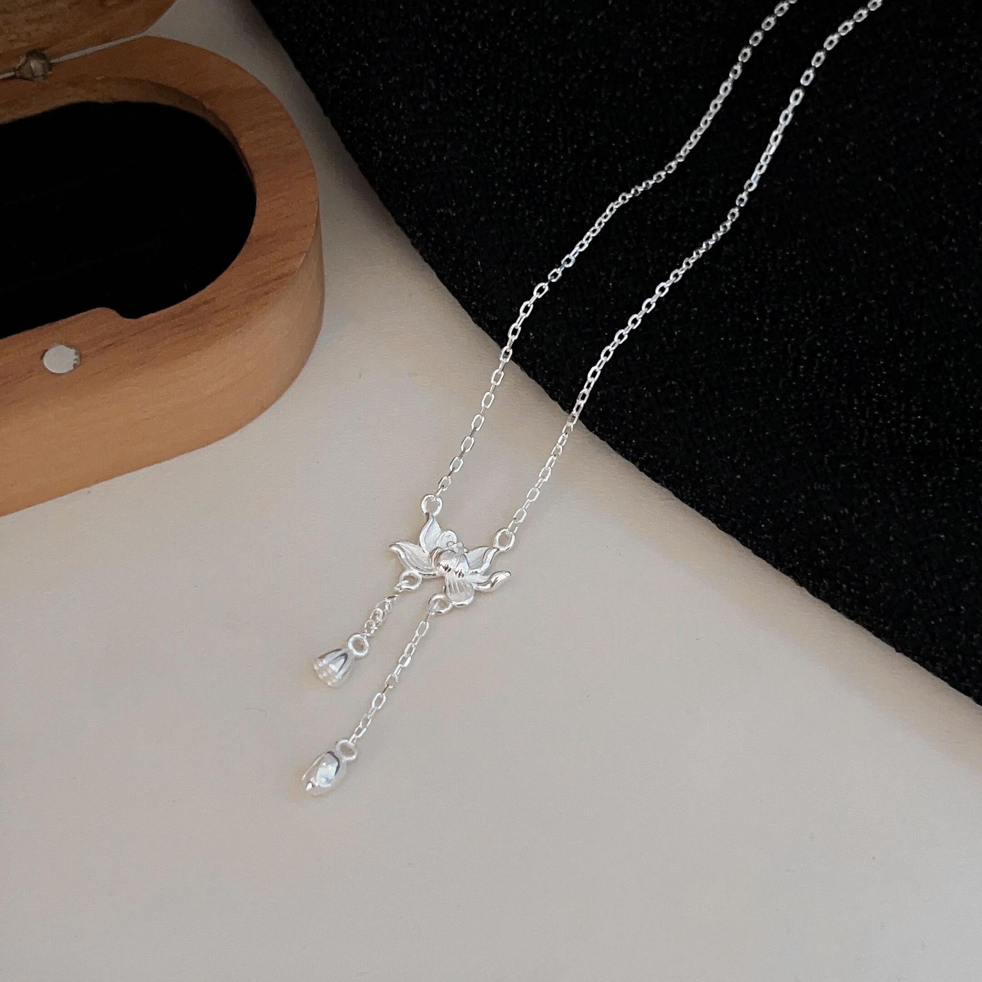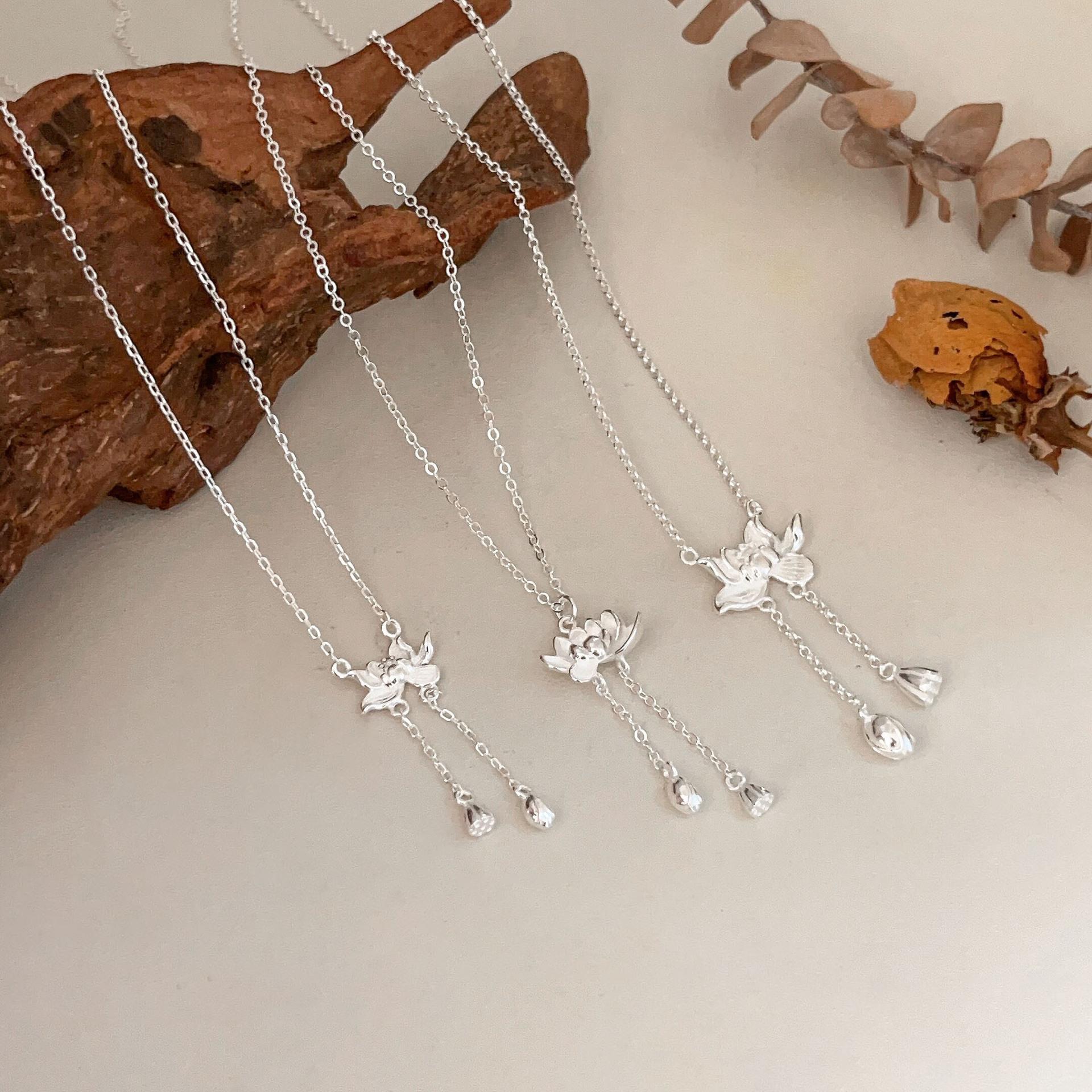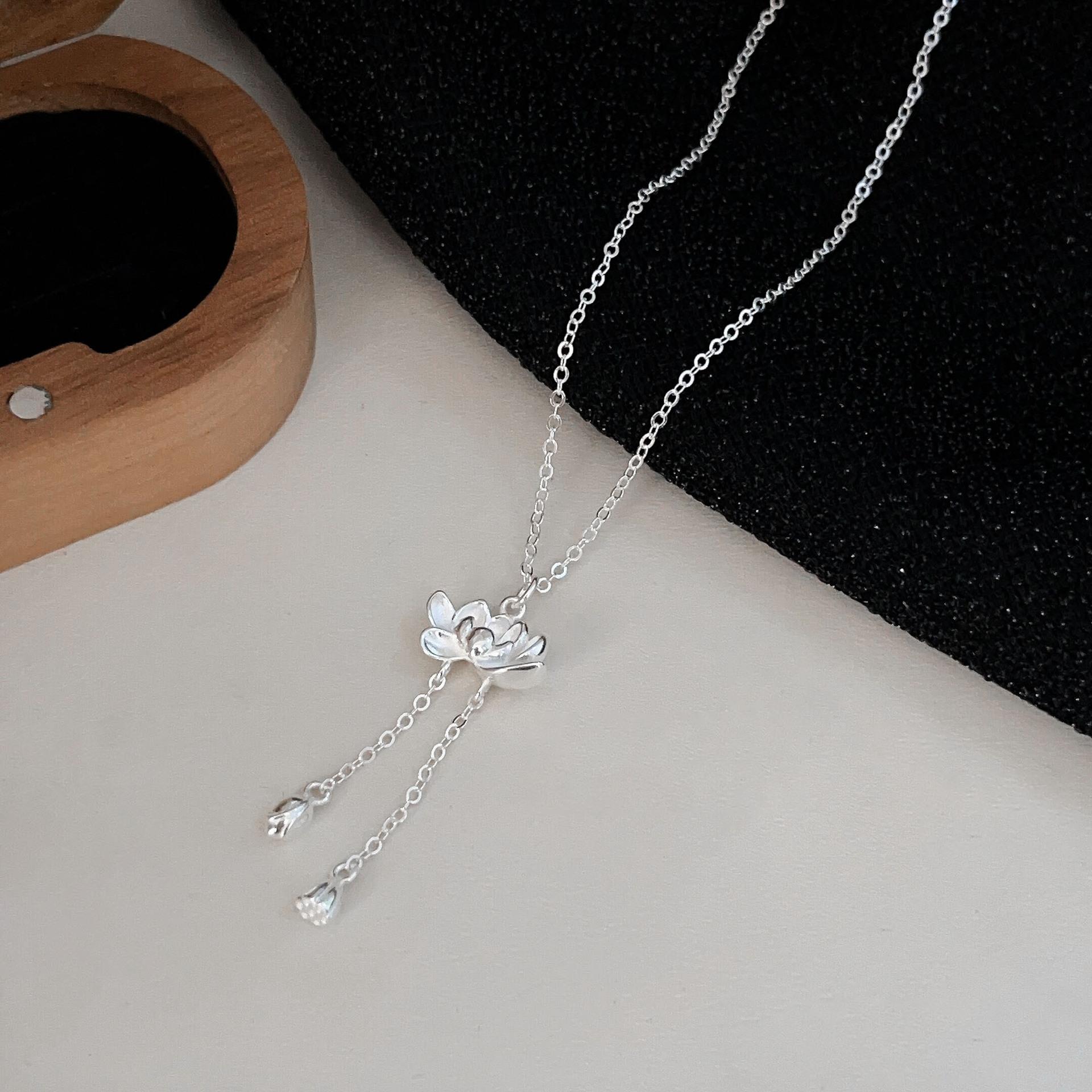 Collar de plata de ley s925 Ruitai con cadena de clavícula de loto de dos mundos, estilo étnico, colección de moda nacional, collar de plata lisa para mujer