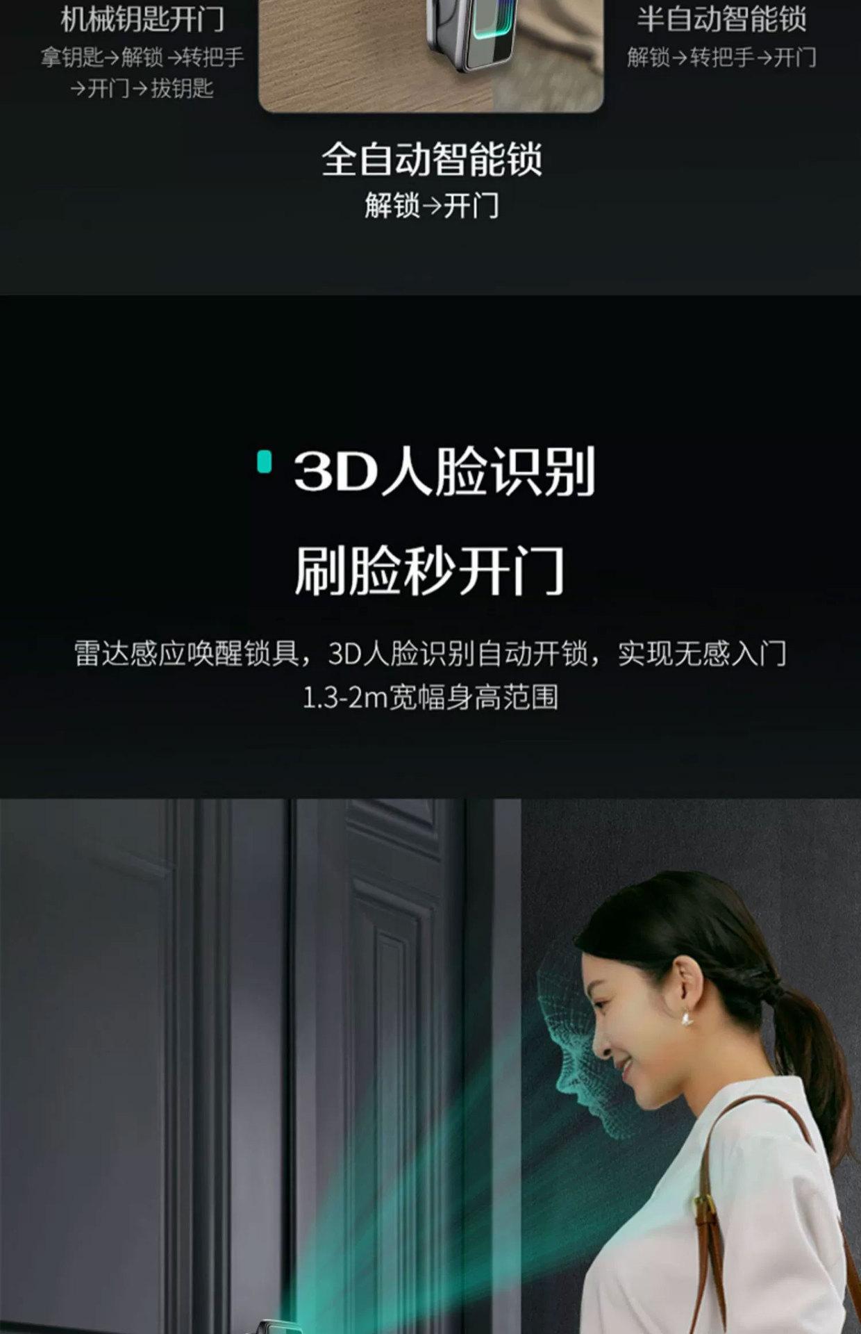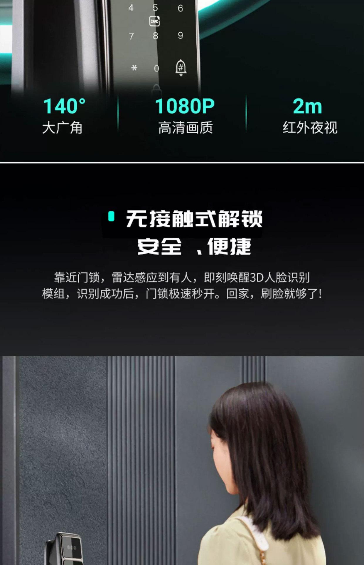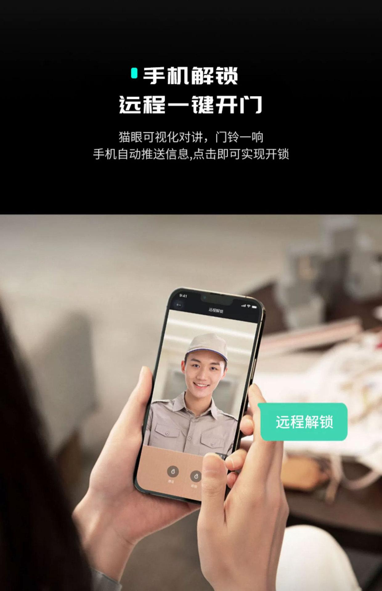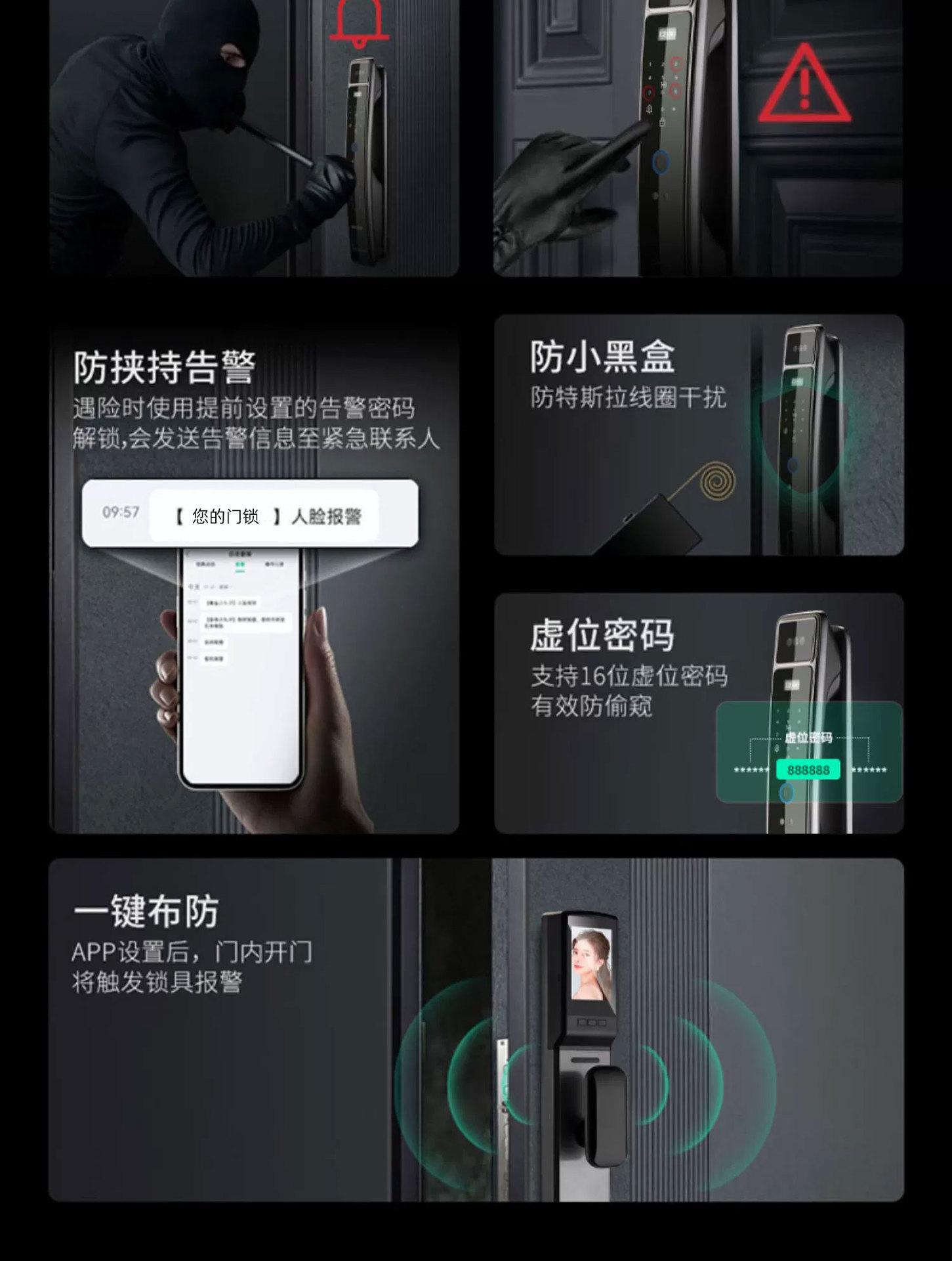 Fingerprint, Password, With key, Visible Cat's Eye, Face recognition, No opening, Remote Unlock