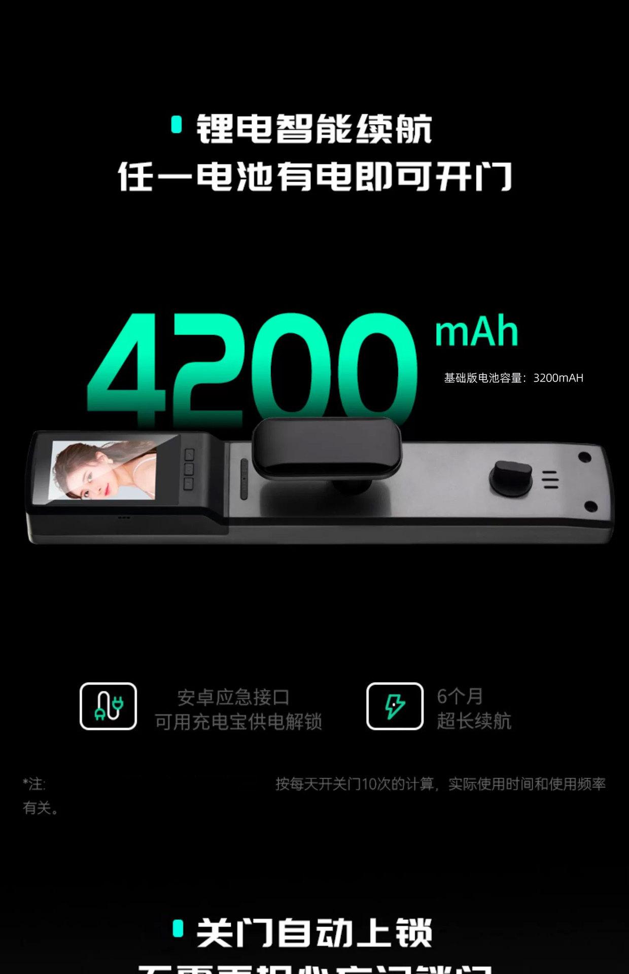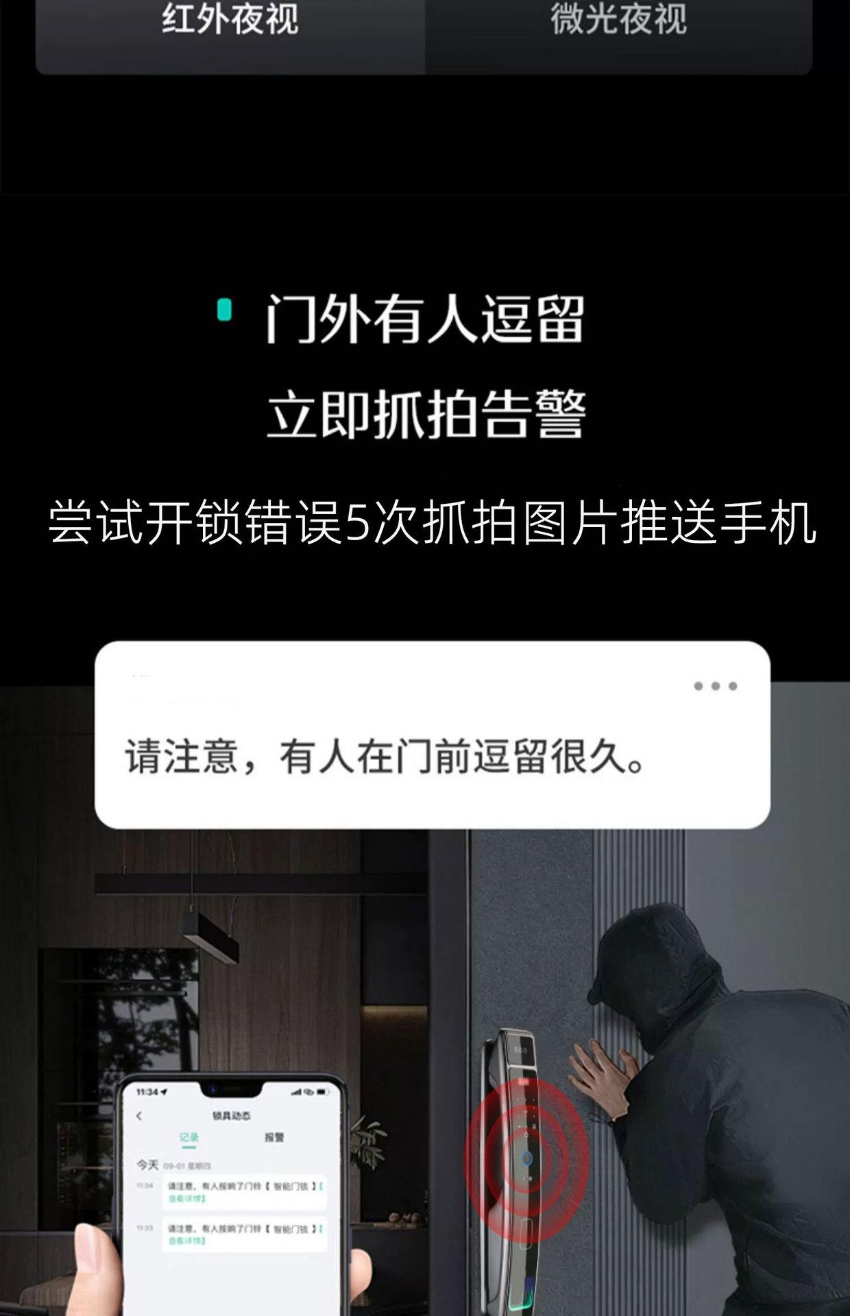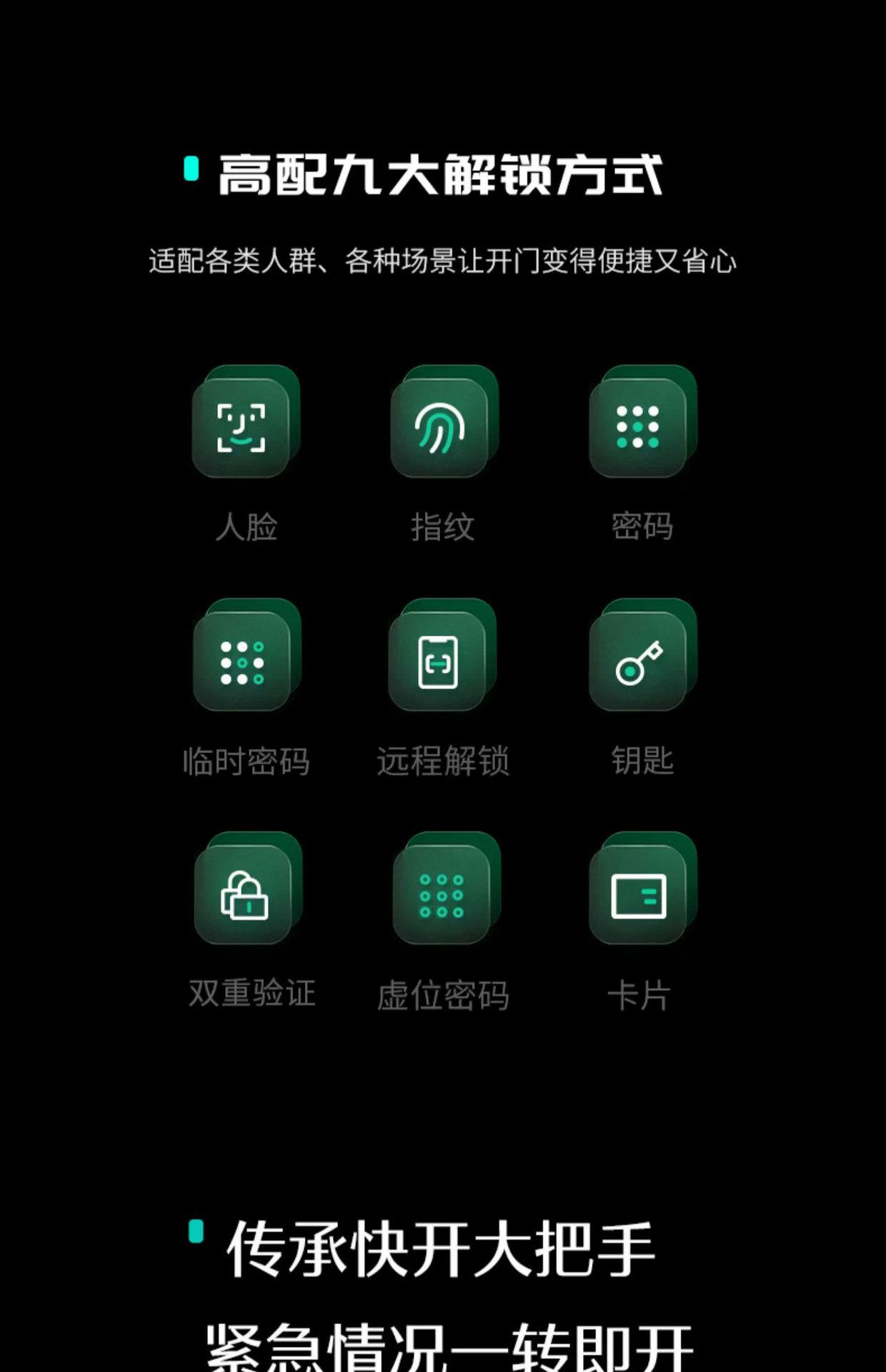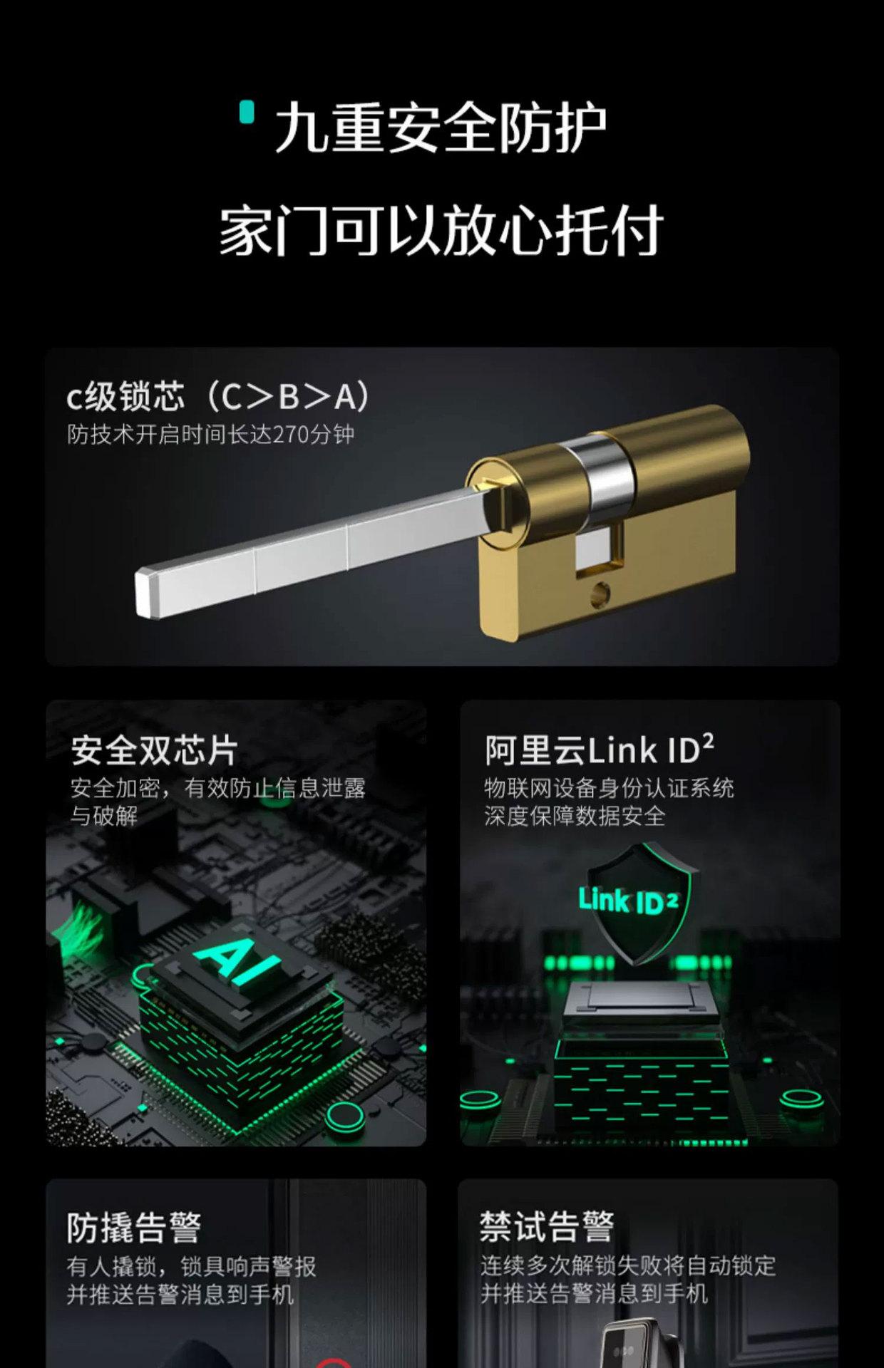 Fingerprint, Password, With key, Visible Cat's Eye, Face recognition, No opening, Remote Unlock