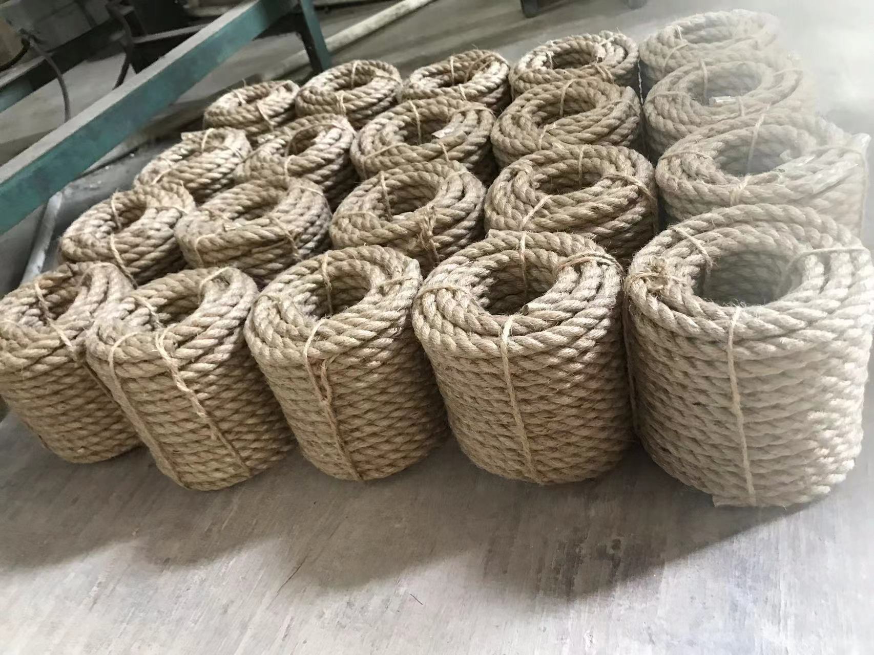 Esta es cuerda de yute ordinaria, no recomendada para juguetes de mascotas: primero, no es resistente a los arañazos. La cuerda de yute es suave en textura, por lo que no queda tan apretada cuando se usa para atar, lo cual es una de sus ventajas, pero su fuerza de tracción no es tan buena como la del sisal, por lo que no es ideal para rascar gatos. Segundo, tiene un fuerte olor a gasolina. Debido a que el yute tiene fibras largas y su tenacidad no es tan buena como la del sisal, necesita más suavizante (aceite de sésamo suave) antes de peinarse en la máquina para procesarlo mejor en la cuerda que necesitamos para la uniformidad. ¡Espero que entiendan! Si se usa para artesanías, trate de no usarlo para embalaje de alimentos. La mayoría se usan para embalaje, decoración, barandillas o jardinería.