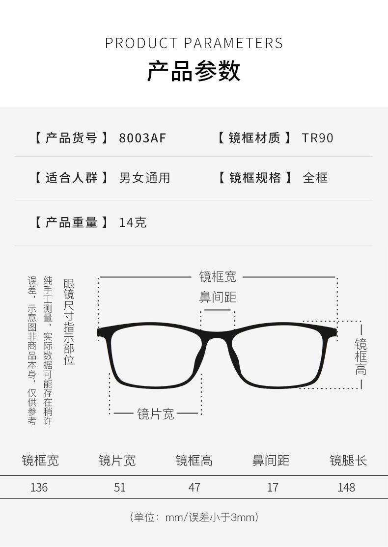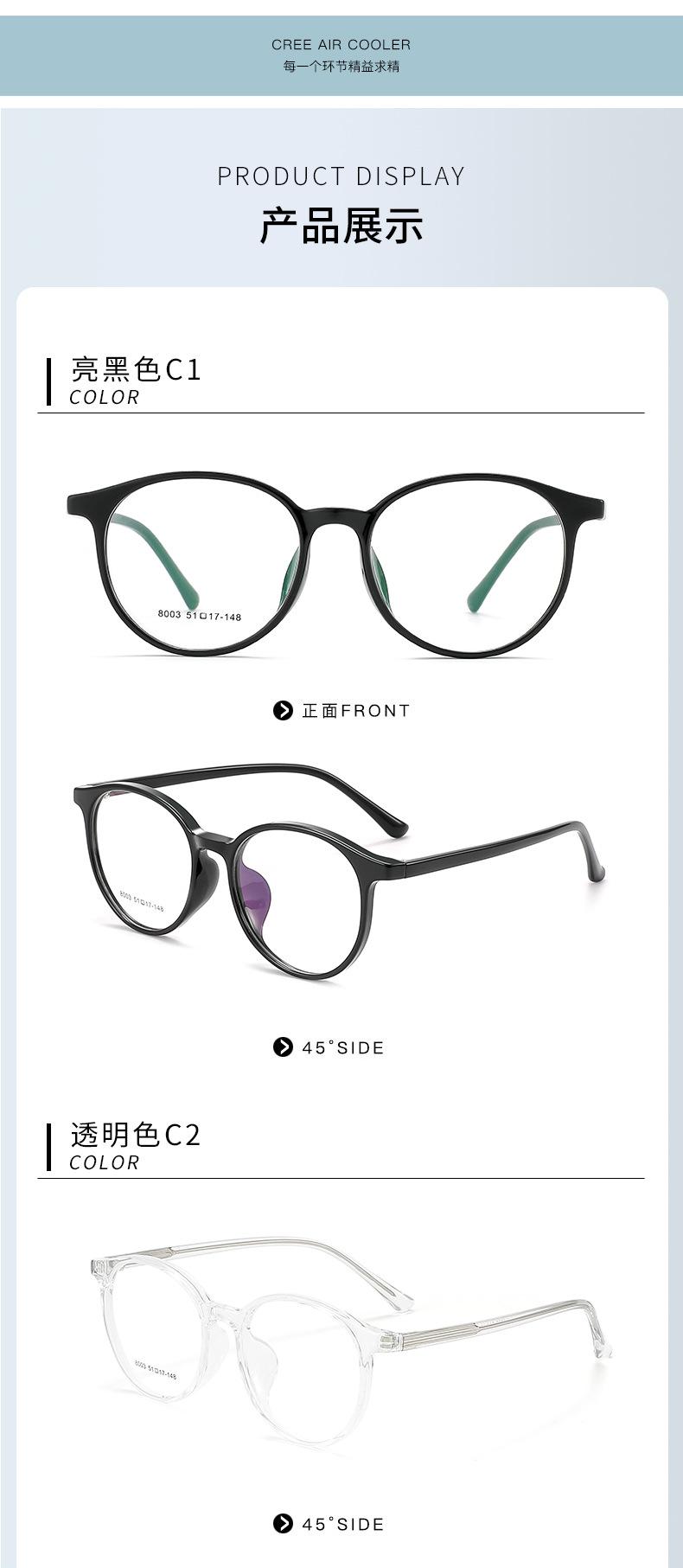 Baishifen nuevo 8003AF montura negra montura redonda montura de gafas de celebridad de Internet montura lisa para todo tipo de gafas para miopía