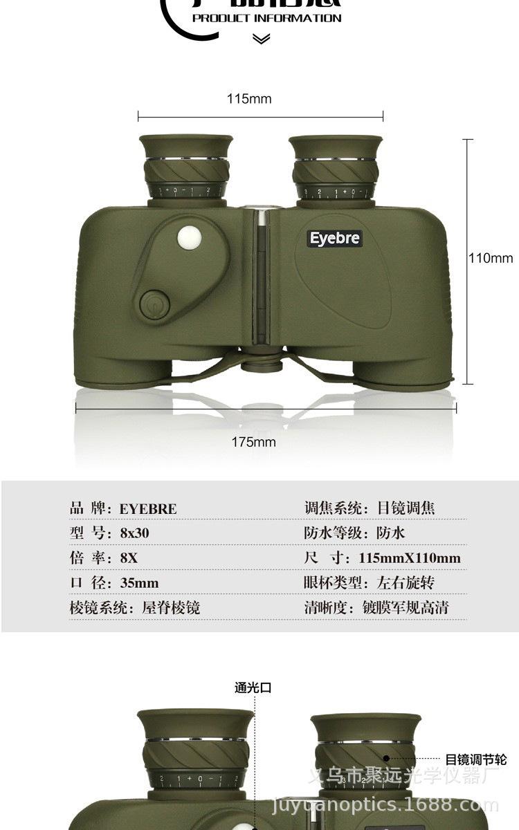 Binoculares Aibo Rui 8X30 Visión Nocturna Alta Definición Alta Potencia Brújula Telemetría Posicionamiento Rellenos de Nitrógeno Impermeables Viaje al Aire Libre