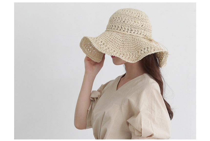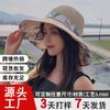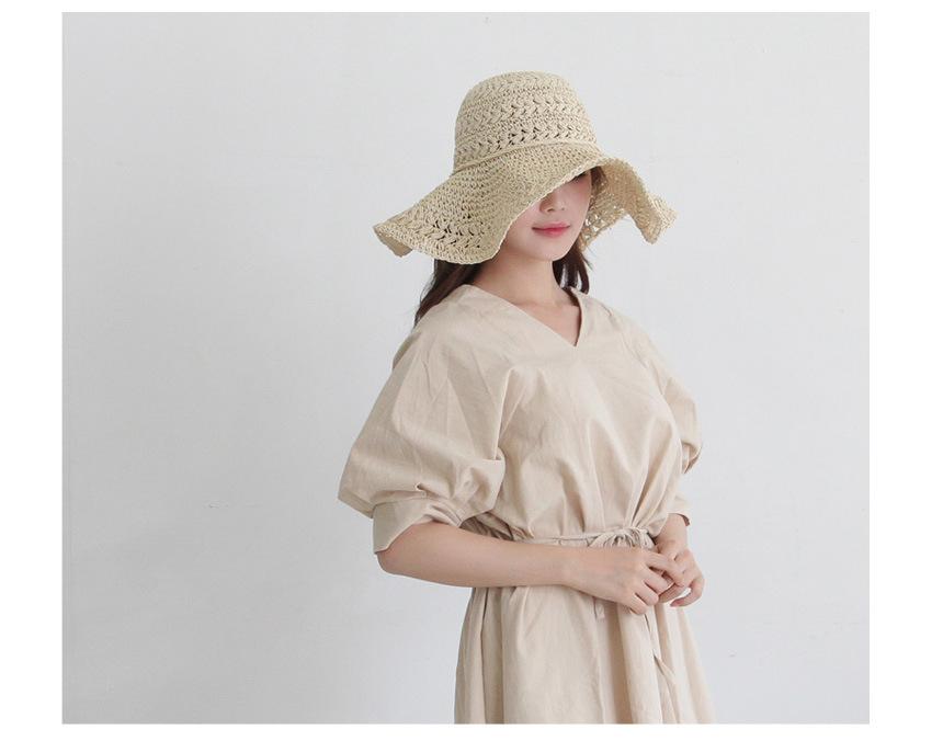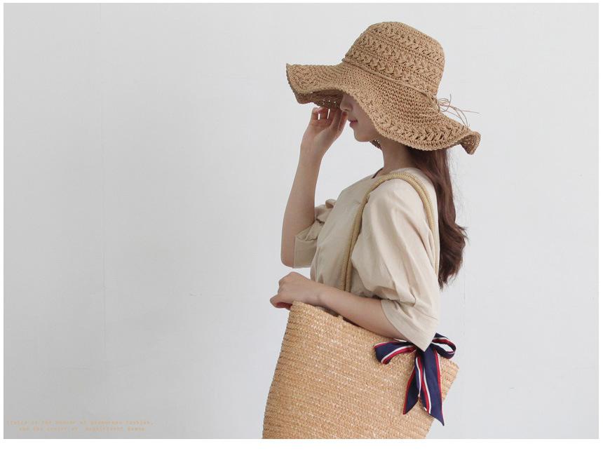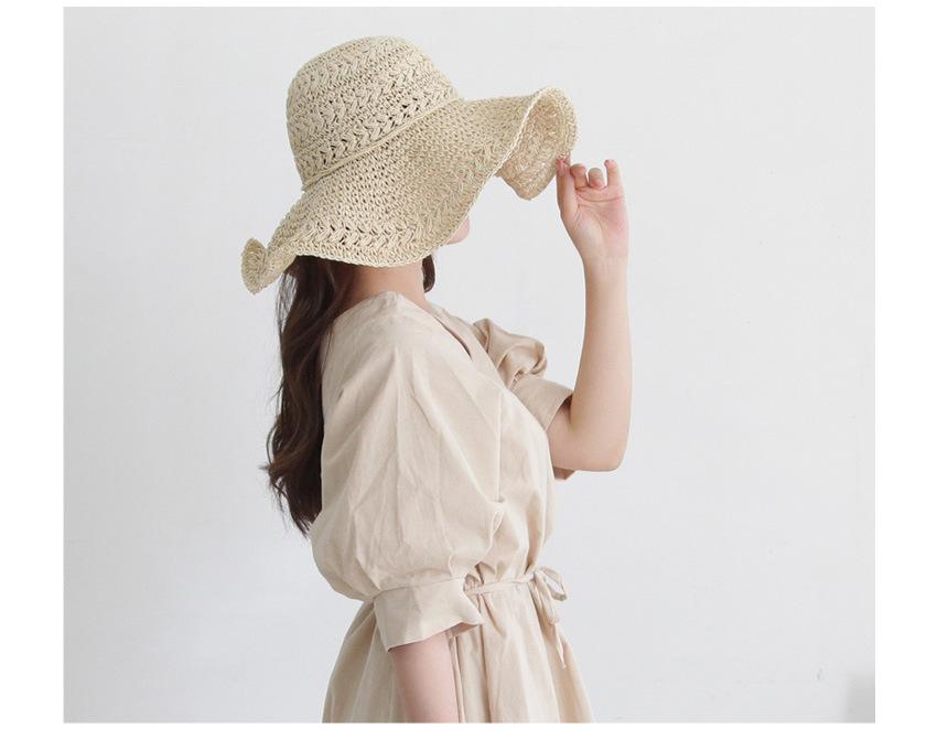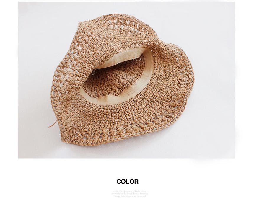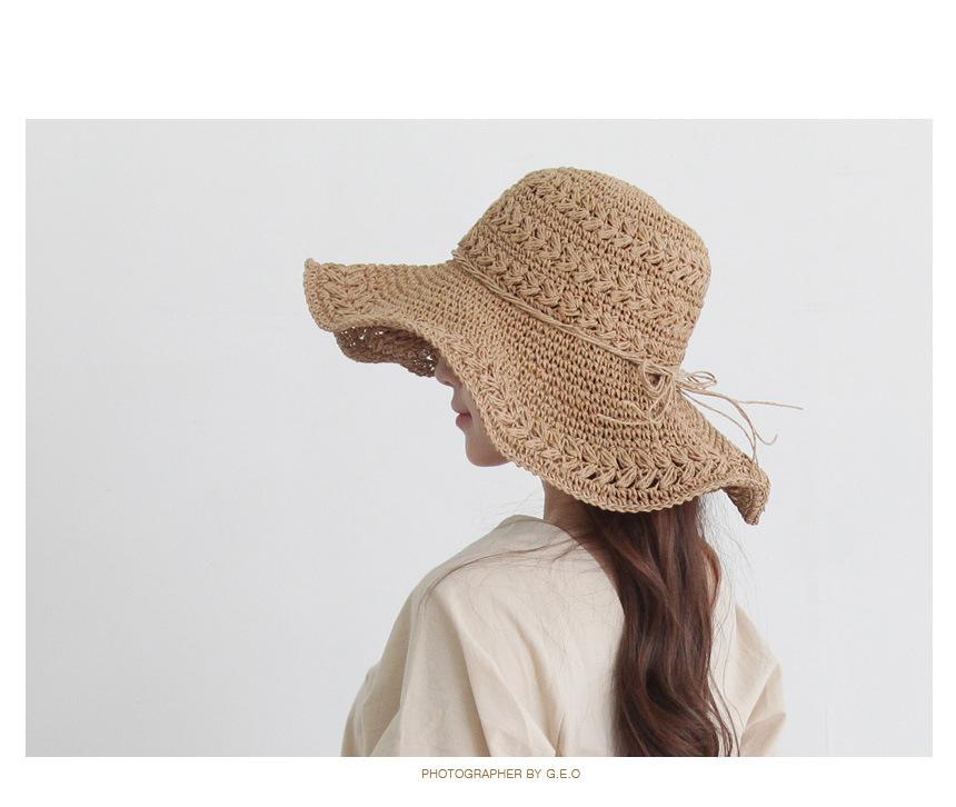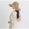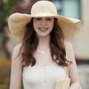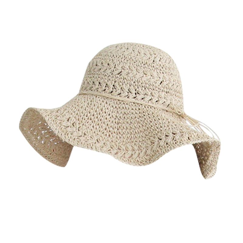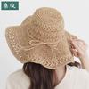 Sombrero de Playa para Mujer Estilo Coreano Combinable Bohemio de Ala Ancha Sombrero de Paja para Viaje Sombrilla Plegable Sombrero para el Sol