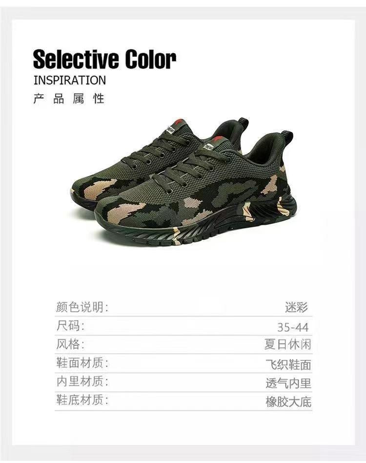 Zapatillas de deporte de camuflaje de primavera transfronterizas, nuevas zapatillas de deporte tejidas voladoras, zapatos casuales de montañismo al aire libre, zapatos de entrenamiento cómodos de moda