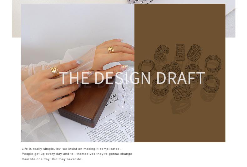 Anillo de diseño geométrico hueco nicho de lujo ligero que no se desvanece con letra inglesa para niñas Corea del Sur simple dedo índice