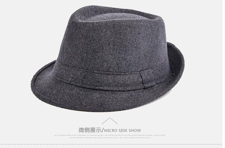 Sombrero de jazz de lana cálido para otoño e invierno, sombrero de ala corta para hombre, estilo británico, retro clásico, sombrero de ala curva para personas de mediana edad y mayores.
