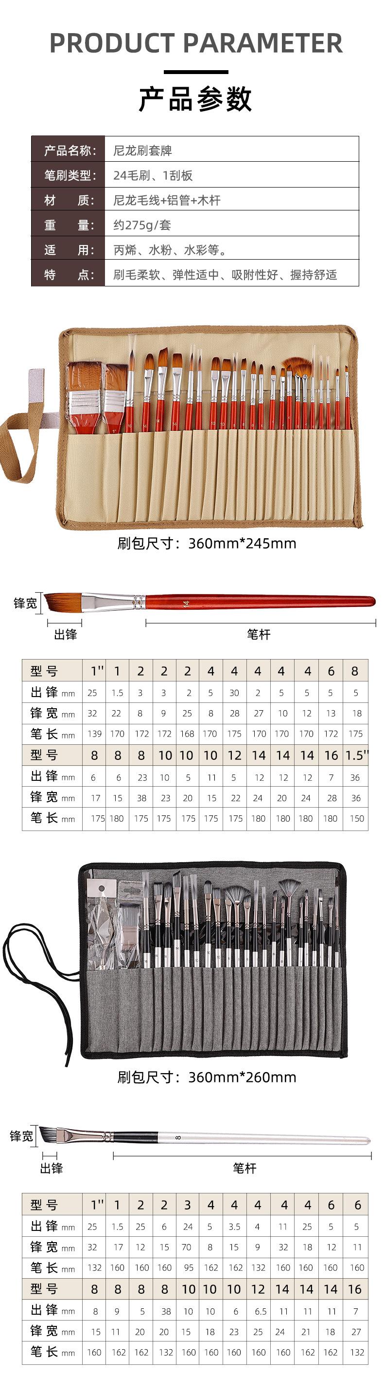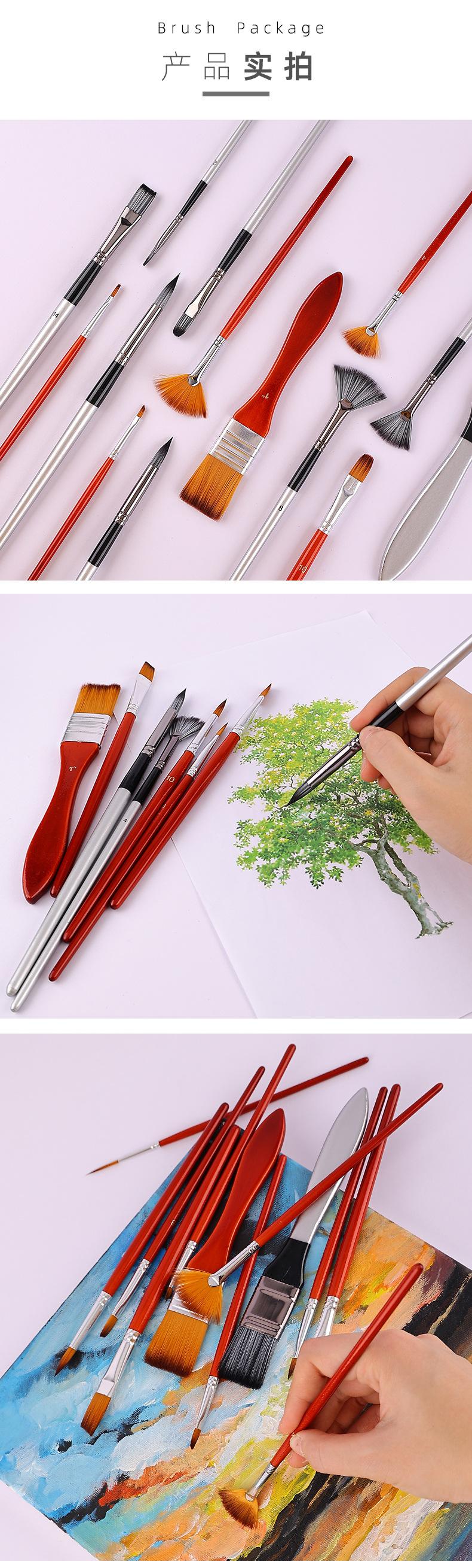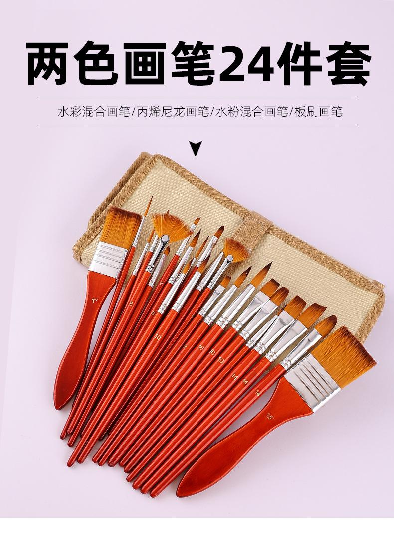 Nuevo set de bolígrafos de pintura acrílica gouache transfronterizo al por mayor 24 piezas bolígrafo de pintura de lana de nailon pincel en forma de abanico pincel para plato de pintura al óleo