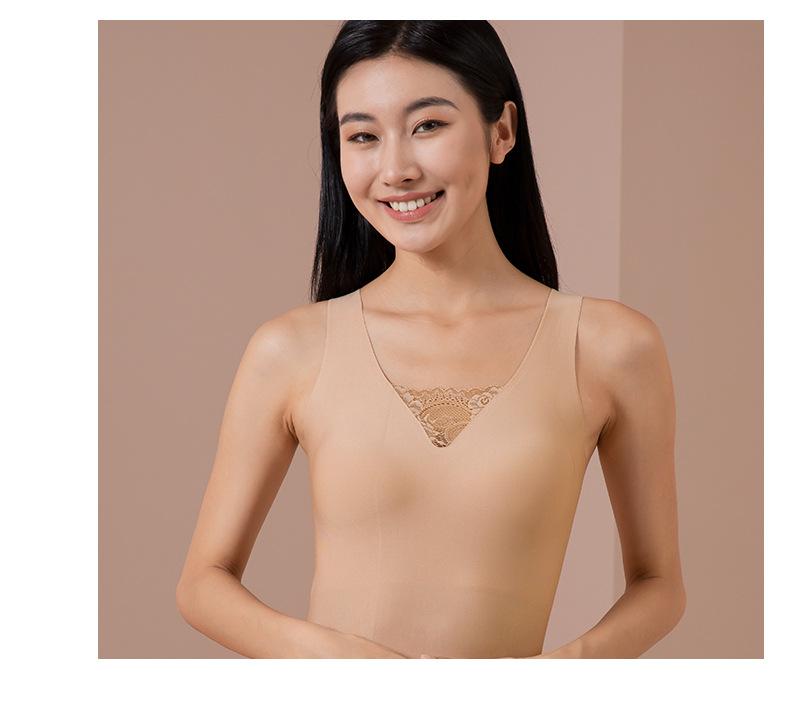 Camisola de encaje con base cálida y almohadilla para el pecho en el interior, ideal para usar en exteriores, ropa interior hermosa con espalda fruncida para damas, venta al por mayor