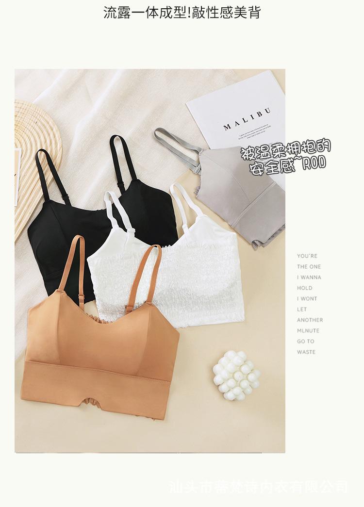 Top de tubo con espalda descubierta, de seda helada, de color liso, con tirantes pequeños, cómodo y antiluz, para niña, con almohadilla para el pecho, ropa interior