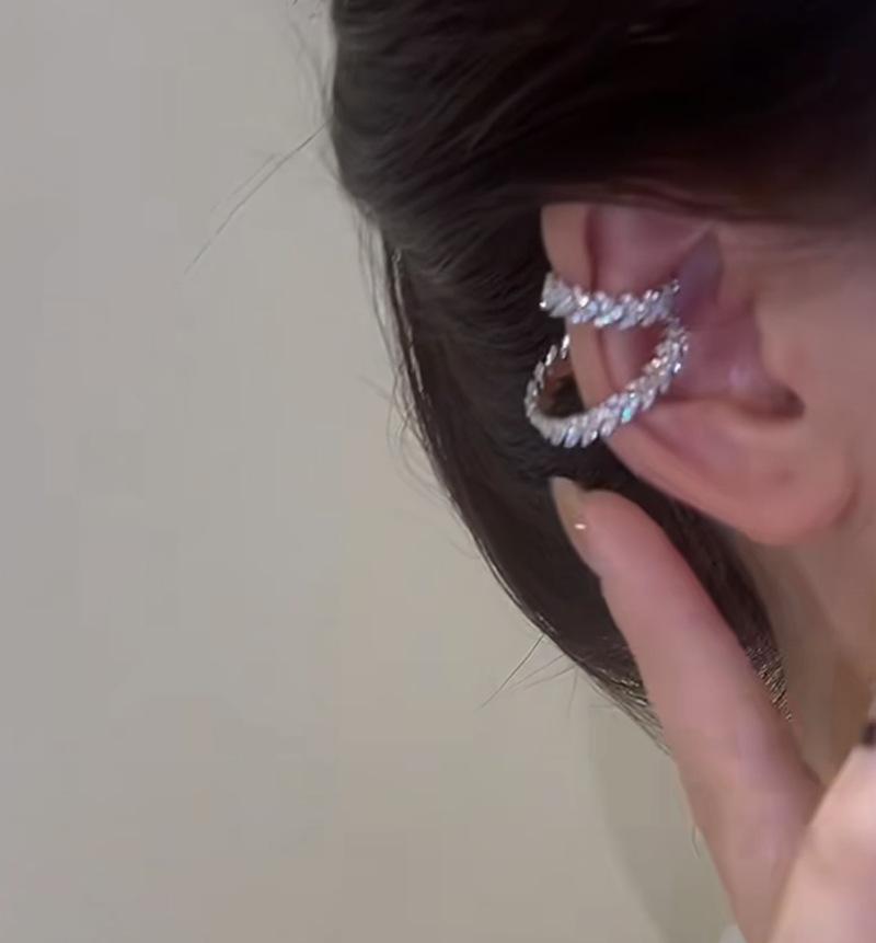 Tiktok mismo estilo hojas de circonio completo clip de hueso de oreja de doble capa lujo ligero circonita diseño sin orejas aretes clip para la oreja aretes