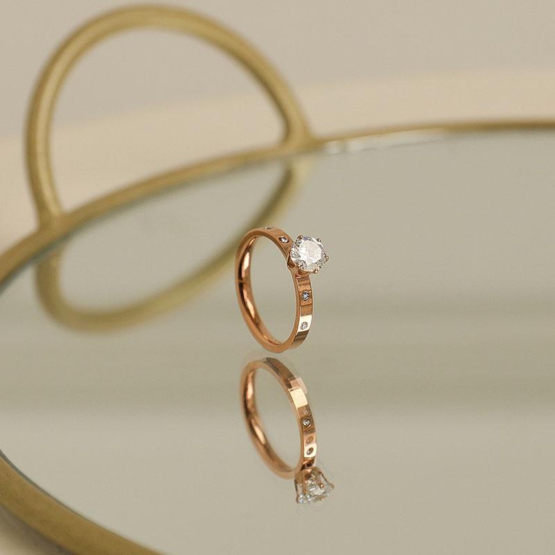 Anillo Sencillo Europeo y Americano de Acero de Titanio y Zircón para Mujer Oro Rosa Anillo de Pareja Moda Combinable Personalizado Moderno Joyería para el Dedo Índice