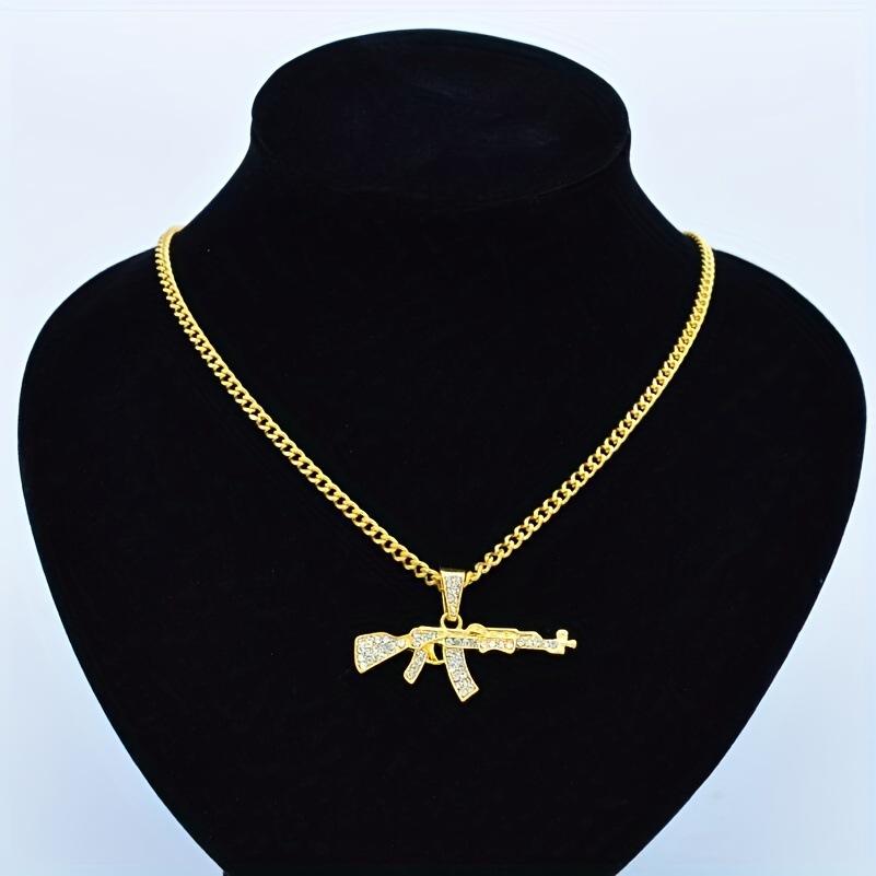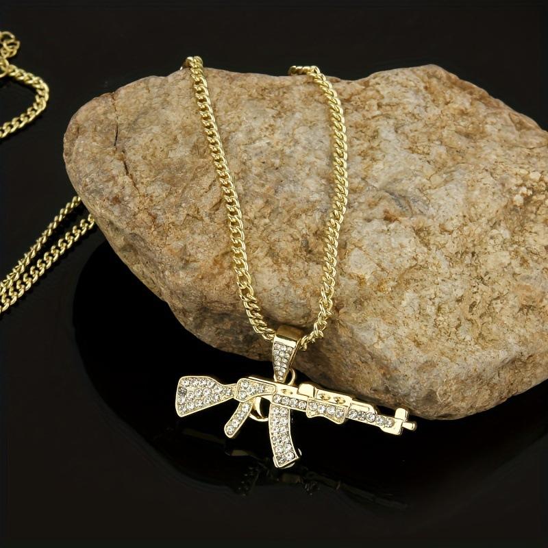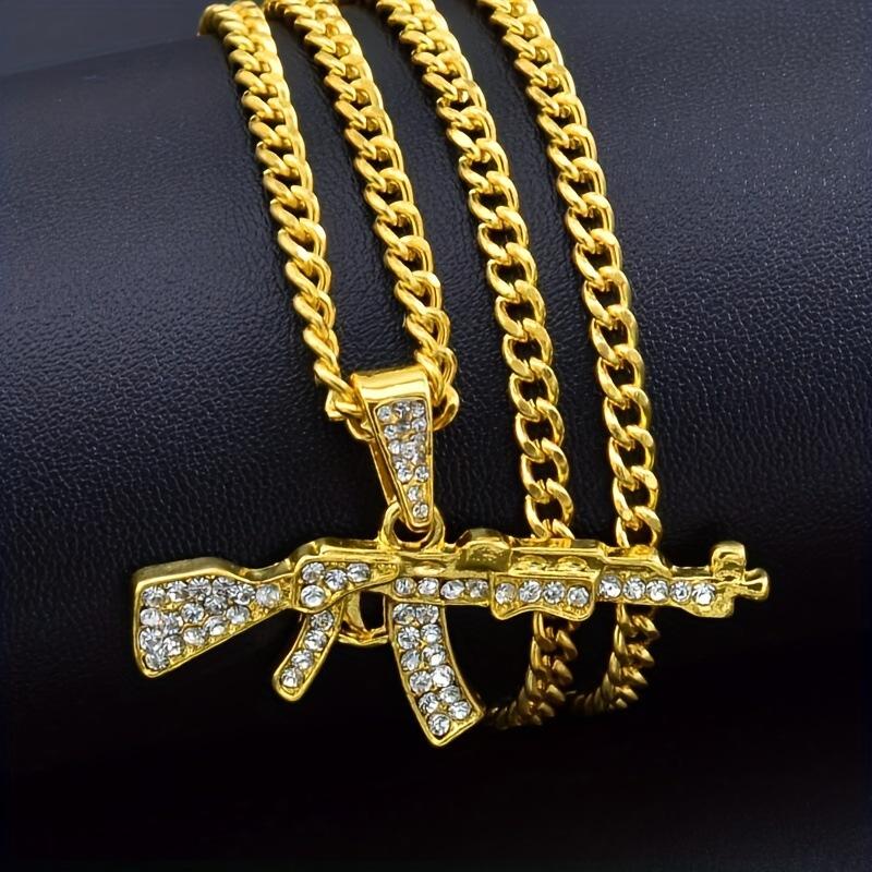 Collar de cadena de clavícula con metralleta de hip hop europeo y americano, colgante transfronterizo, joyería ajustable con diamantes completos para hombres y mujeres, pareja con diamantes completos