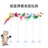 Juguete para gatos con ventosa, venta al por mayor de fábrica, con resorte, ratón, palo para gato, ventosa, pluma, campana, juguete de succión