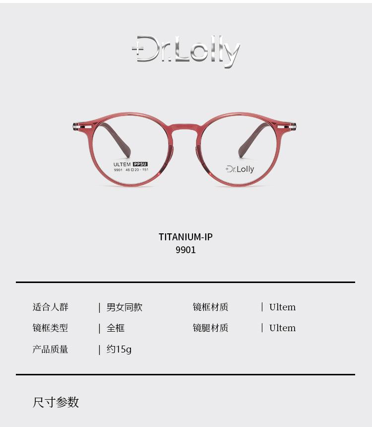 Gafas DR.LOLLY con montura de titanio puro, montura ultraligera roja de maquillaje liso, gafas para miopía óptica, gafas Danyang