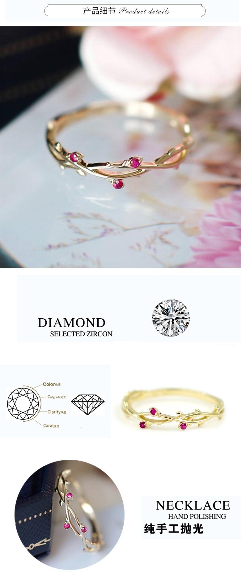 Anillo Zhen Rong con nuevo corindón rojo incrustado Europa y Estados Unidos anillo de compromiso chapado en oro de 18k para mujer pequeña