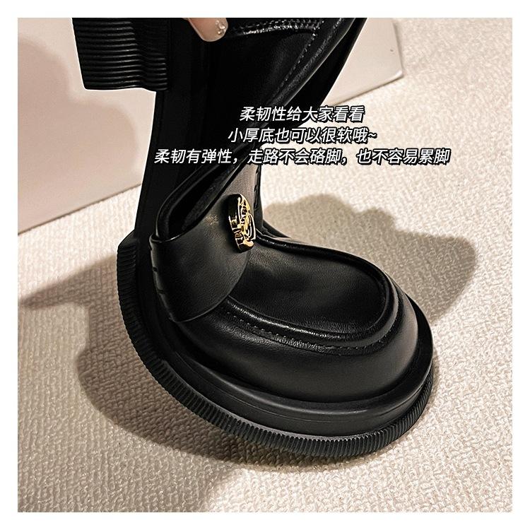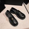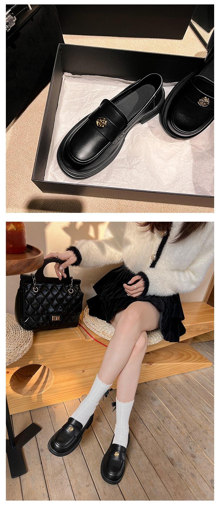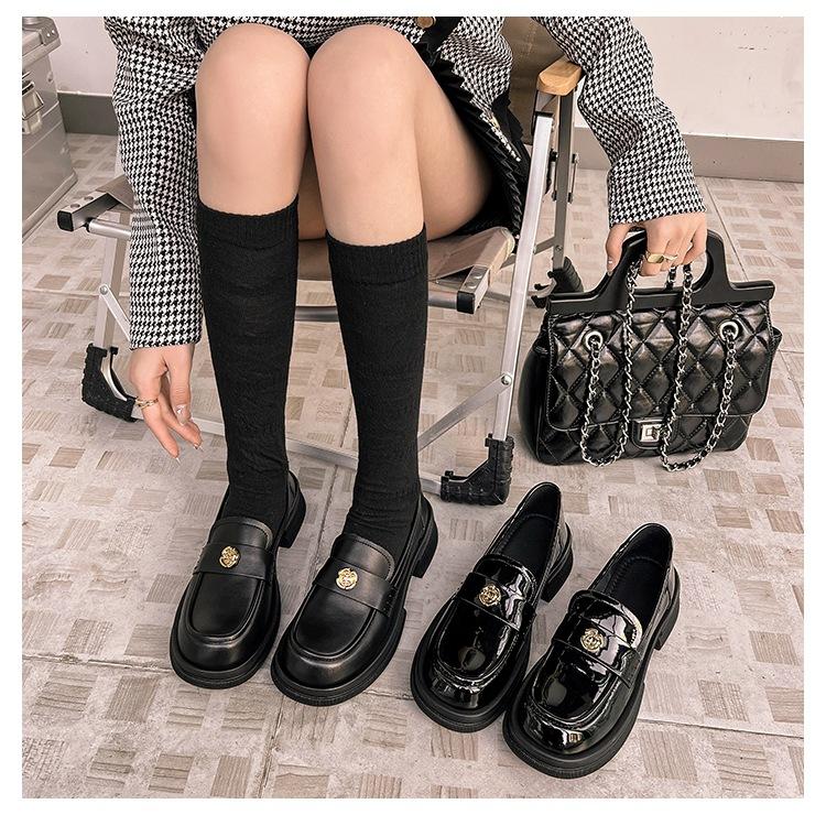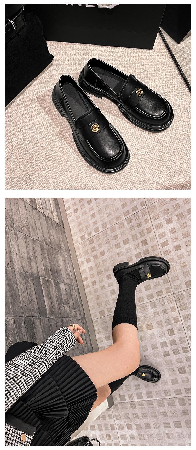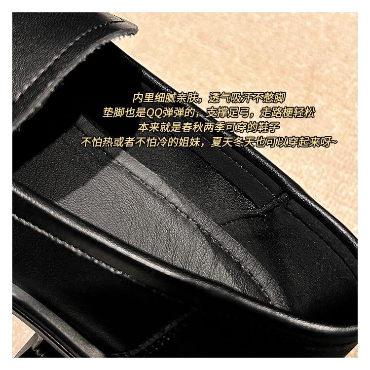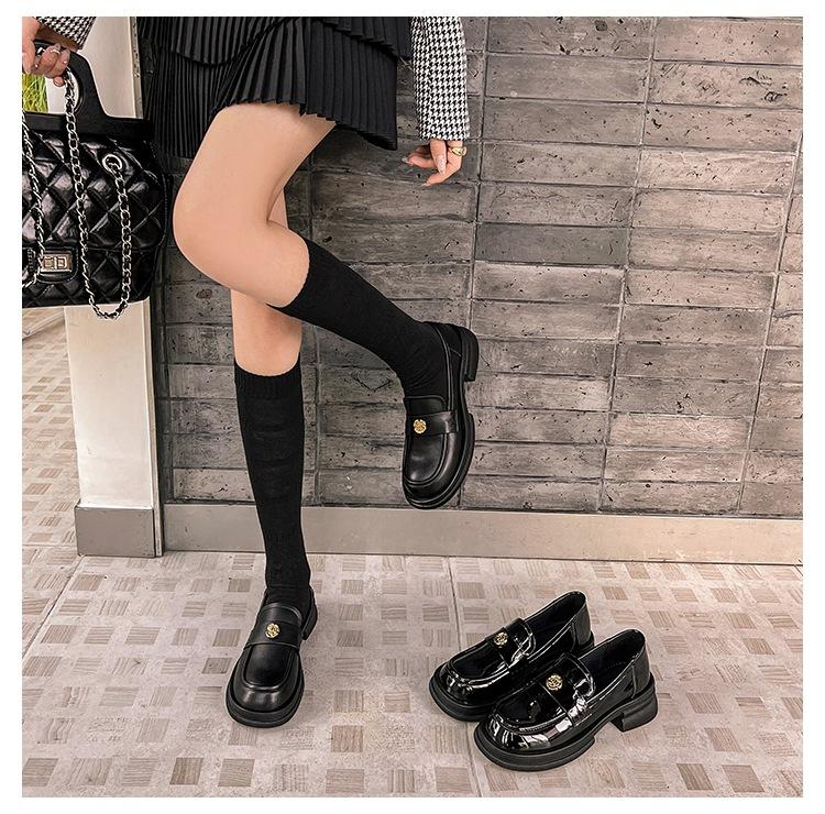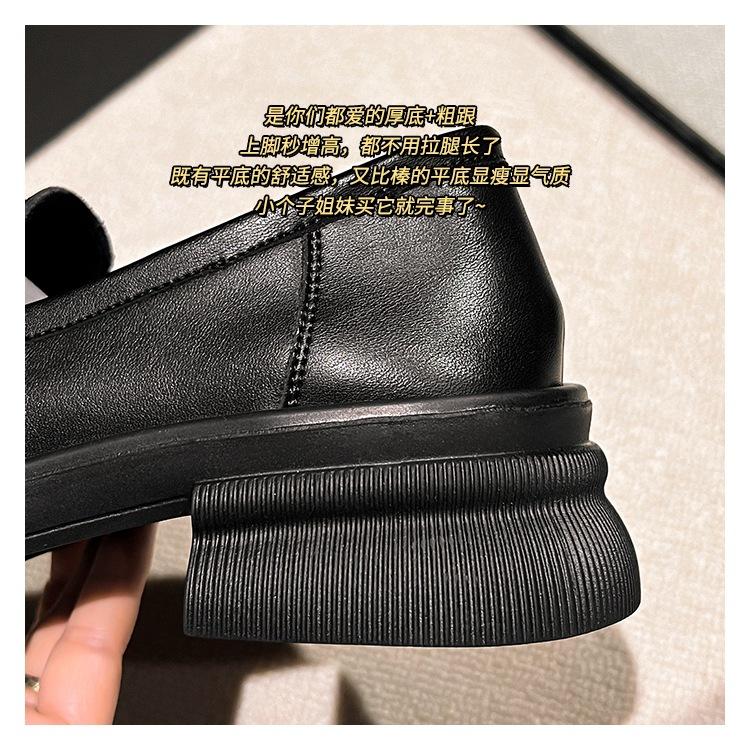 Mocasines negros de tacón grueso para otoño e invierno, zapatos británicos pequeños de cuero, zapatos sin cordones, zapatos de mujer de suela gruesa, cómodos y combinables.