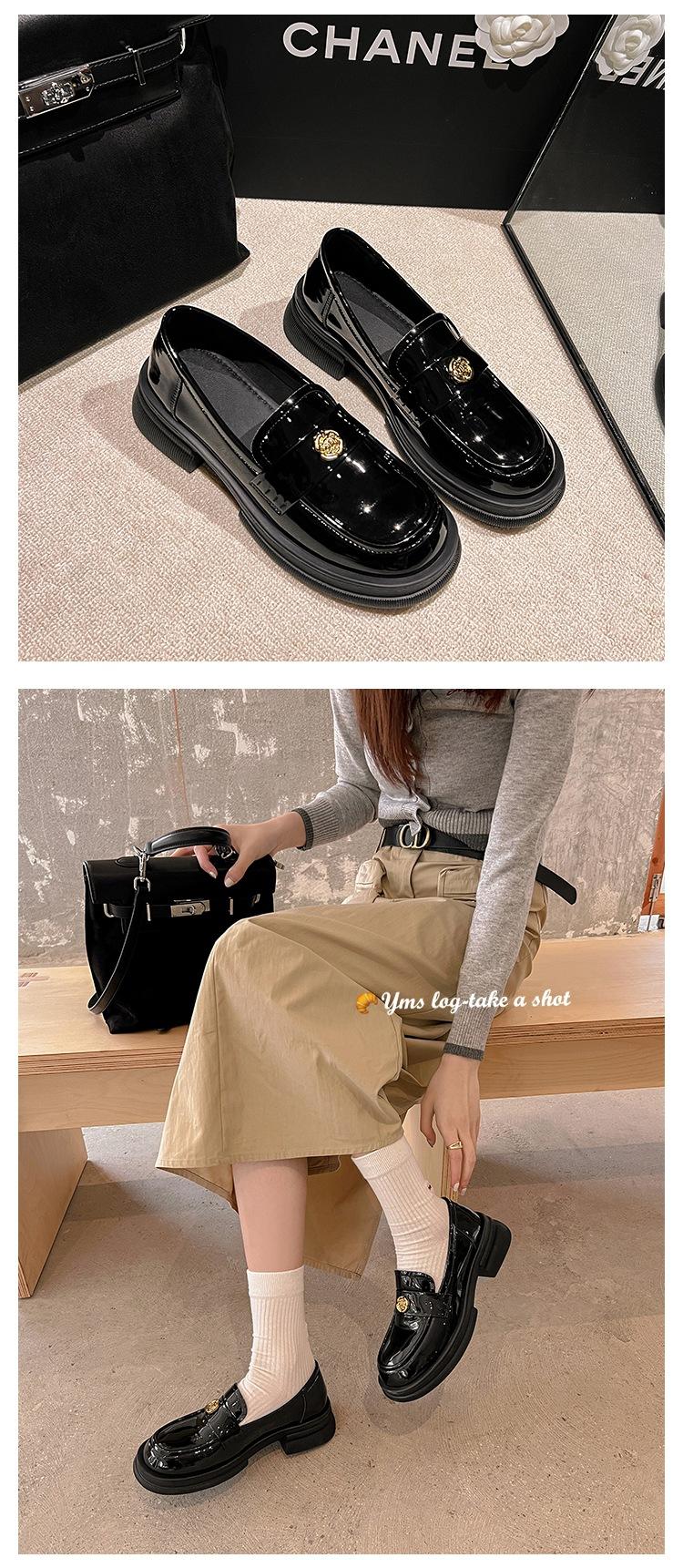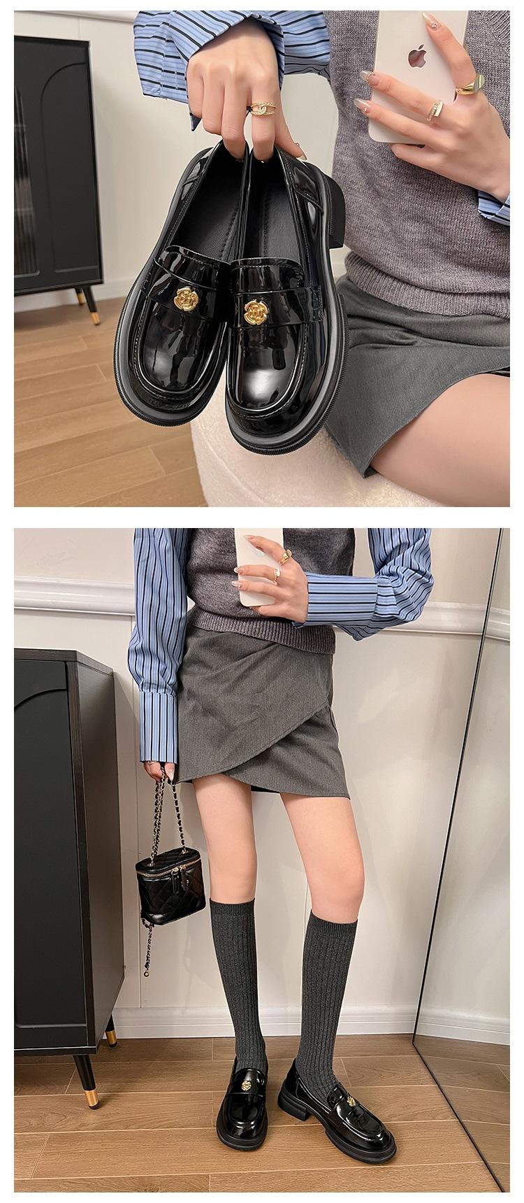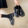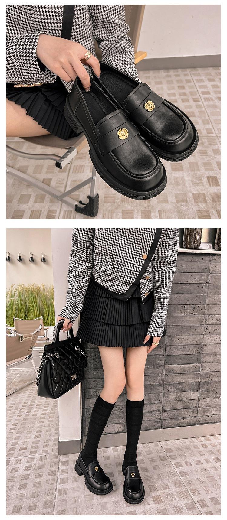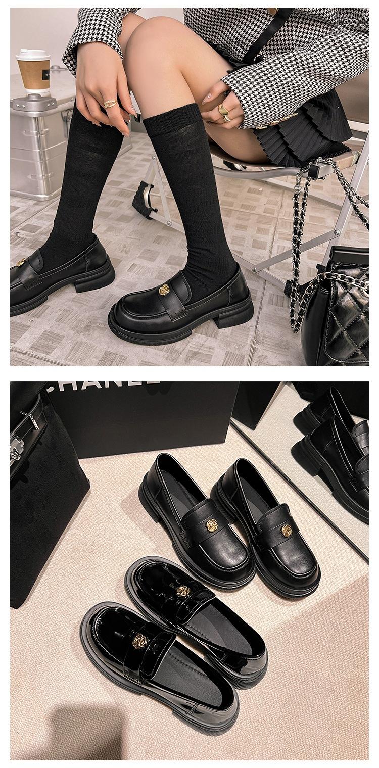 Mocasines negros de tacón grueso para otoño e invierno, zapatos británicos pequeños de cuero, zapatos sin cordones, zapatos de mujer de suela gruesa, cómodos y combinables.