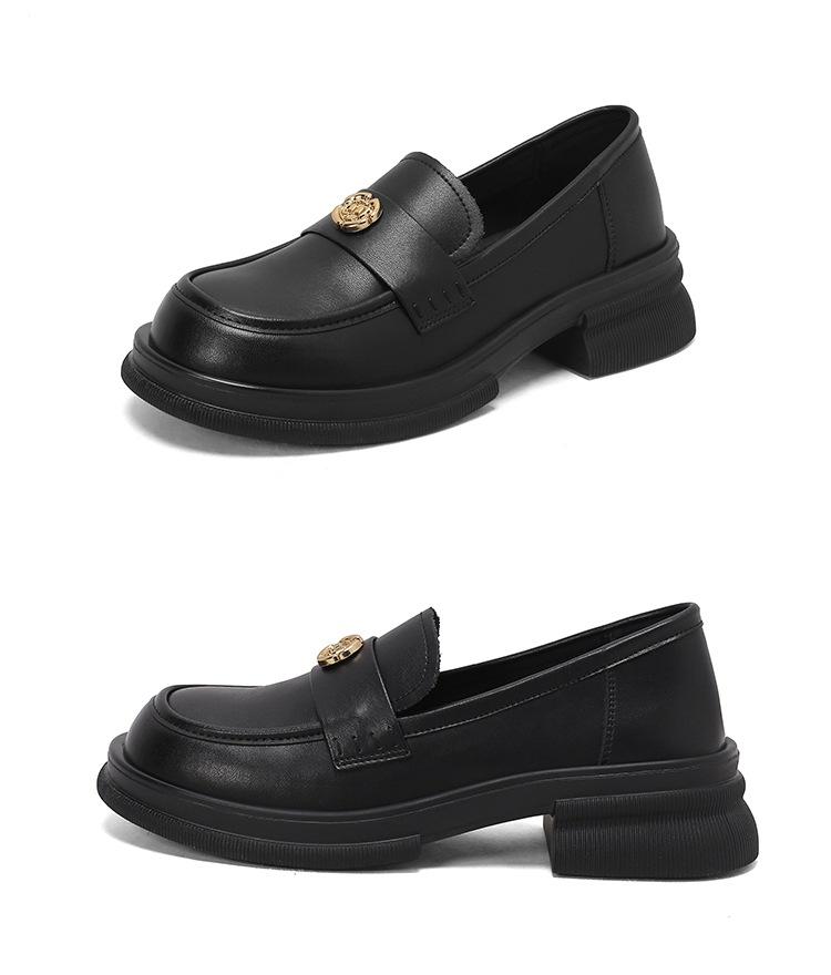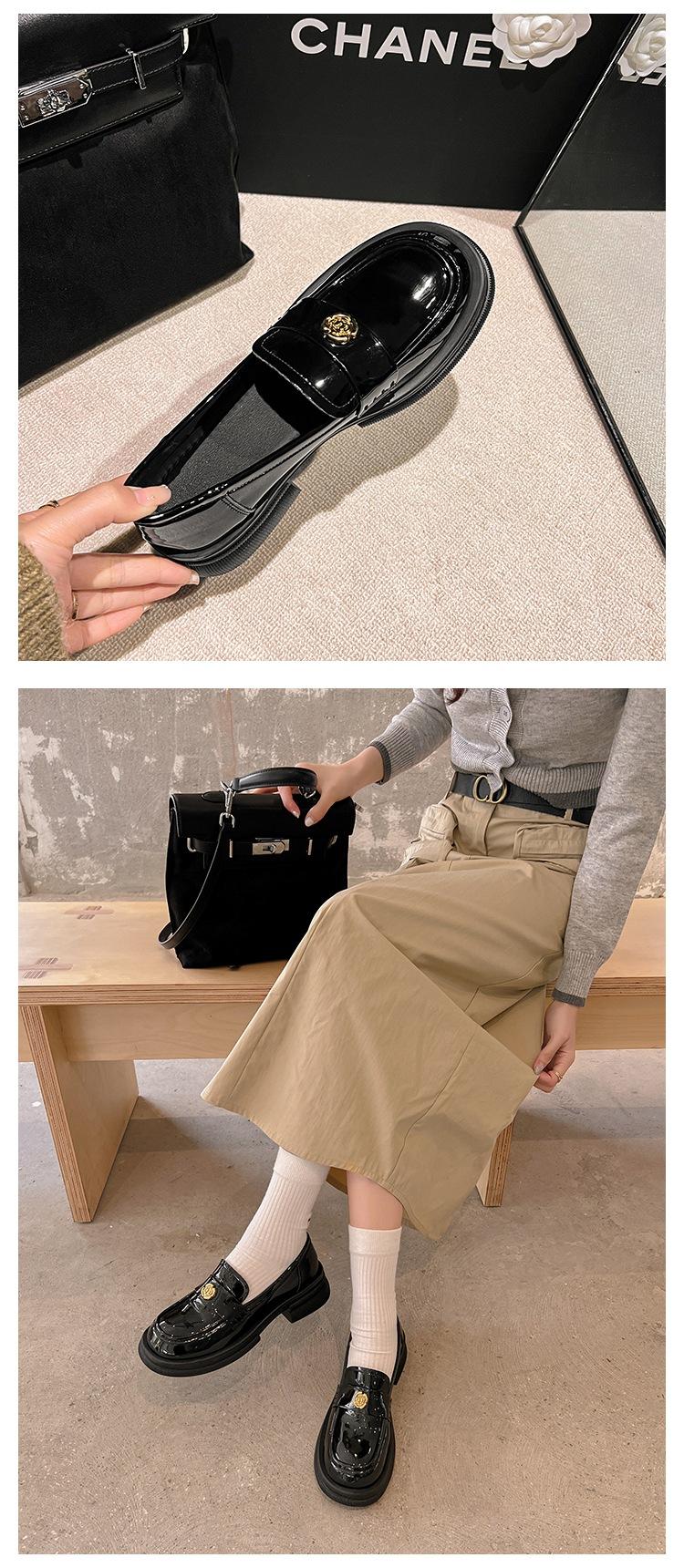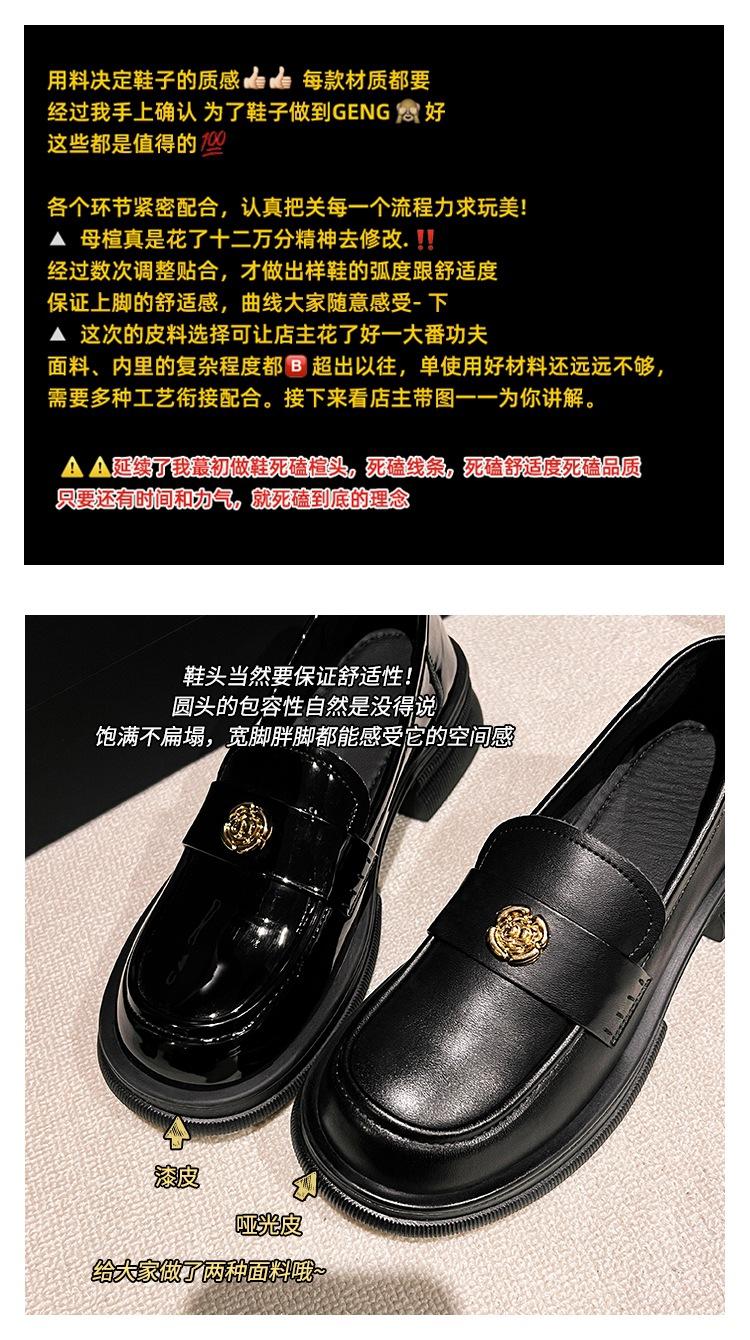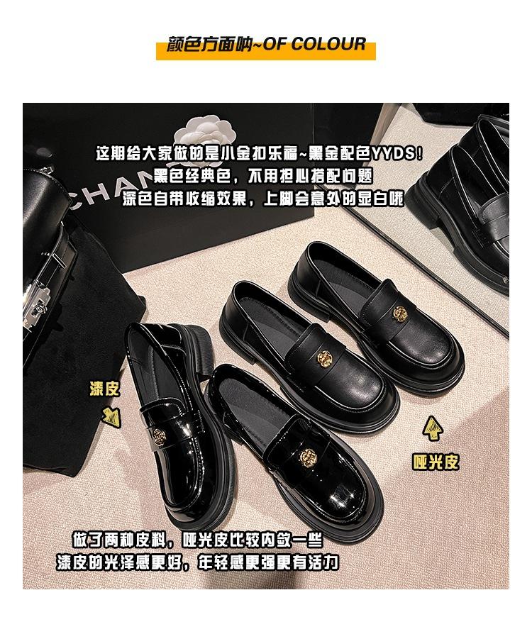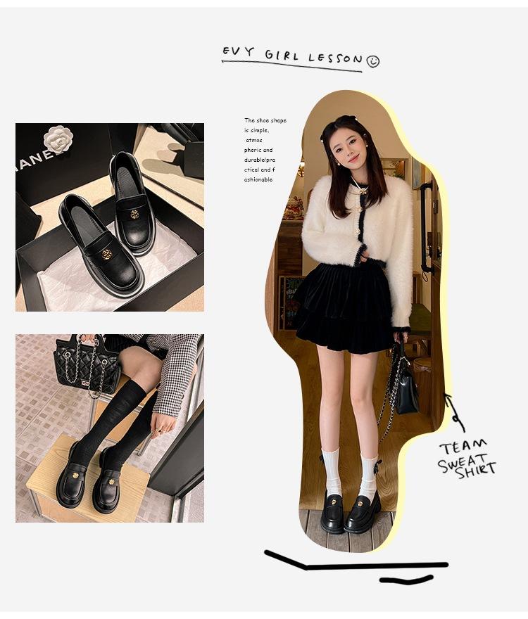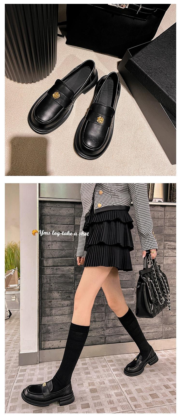 Mocasines negros de tacón grueso para otoño e invierno, zapatos británicos pequeños de cuero, zapatos sin cordones, zapatos de mujer de suela gruesa, cómodos y combinables.