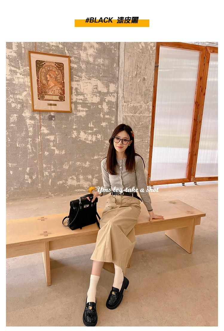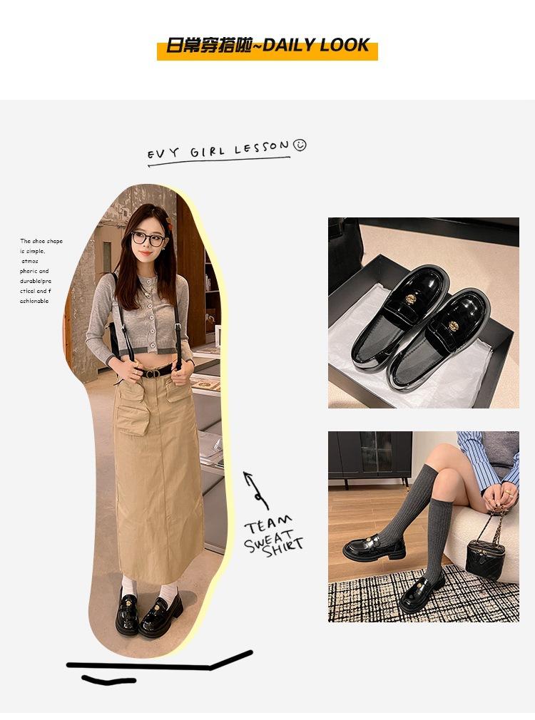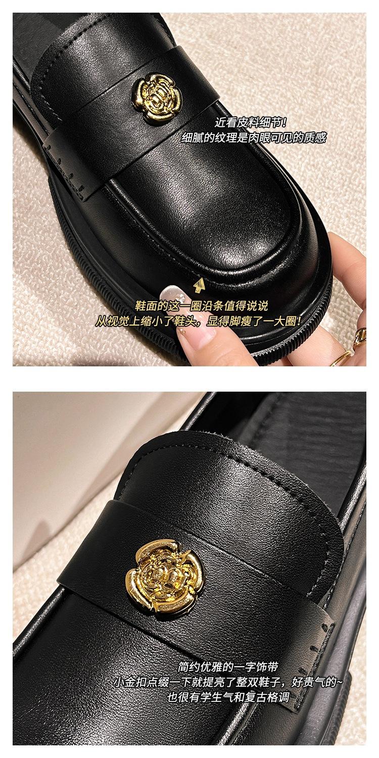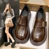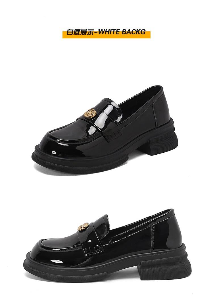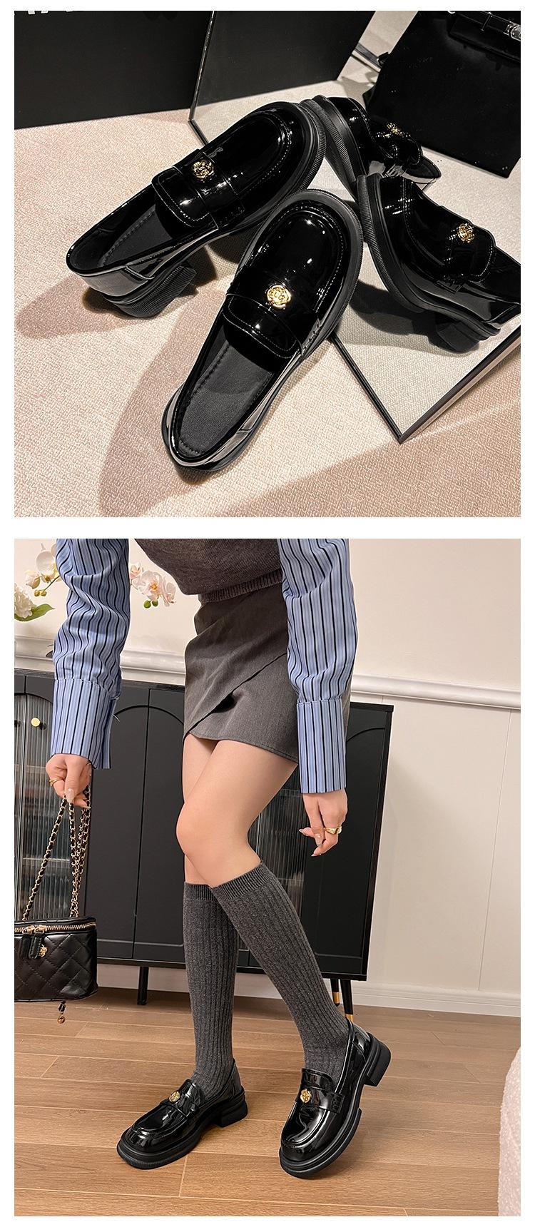 Mocasines negros de tacón grueso para otoño e invierno, zapatos británicos pequeños de cuero, zapatos sin cordones, zapatos de mujer de suela gruesa, cómodos y combinables.