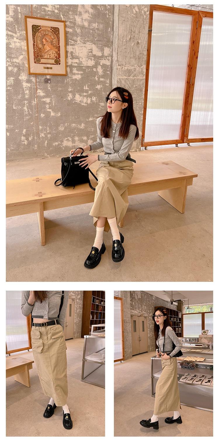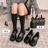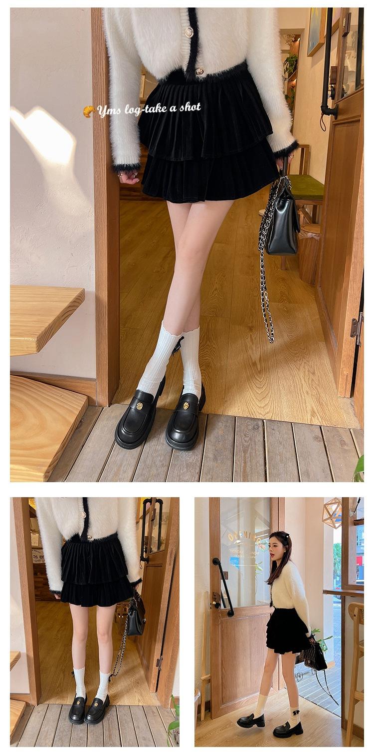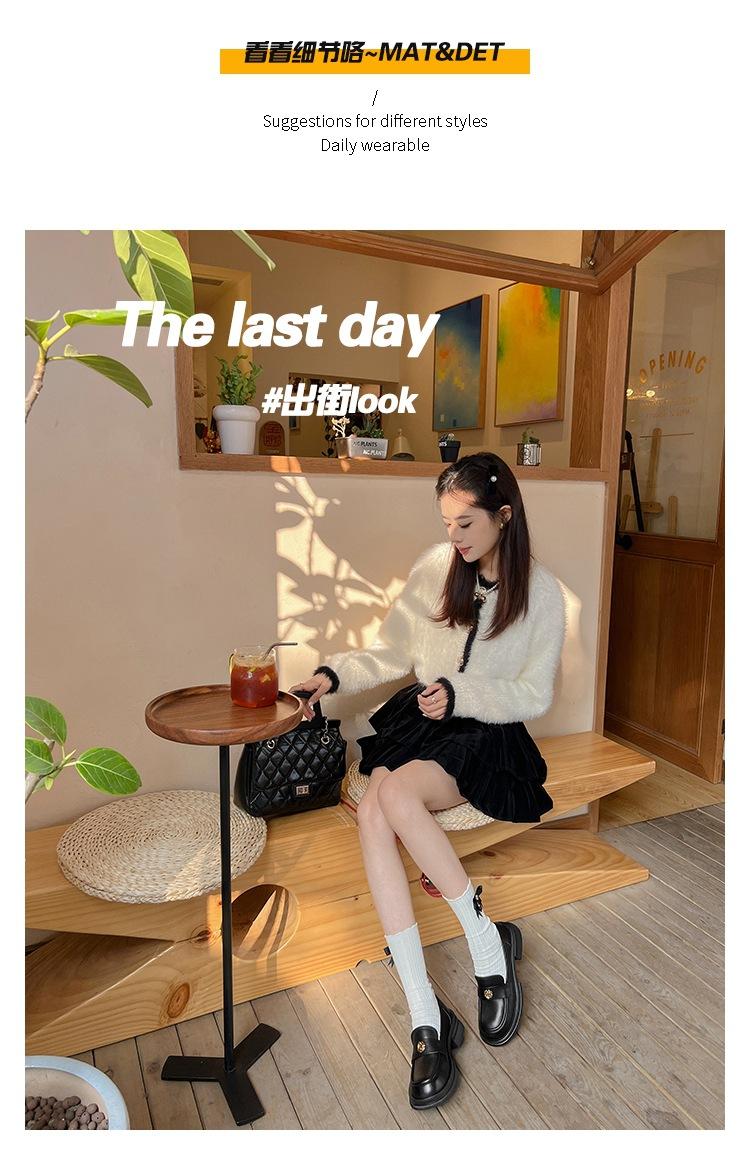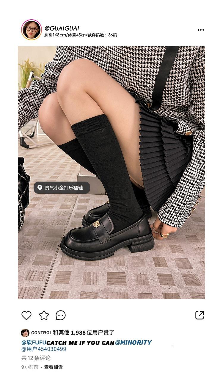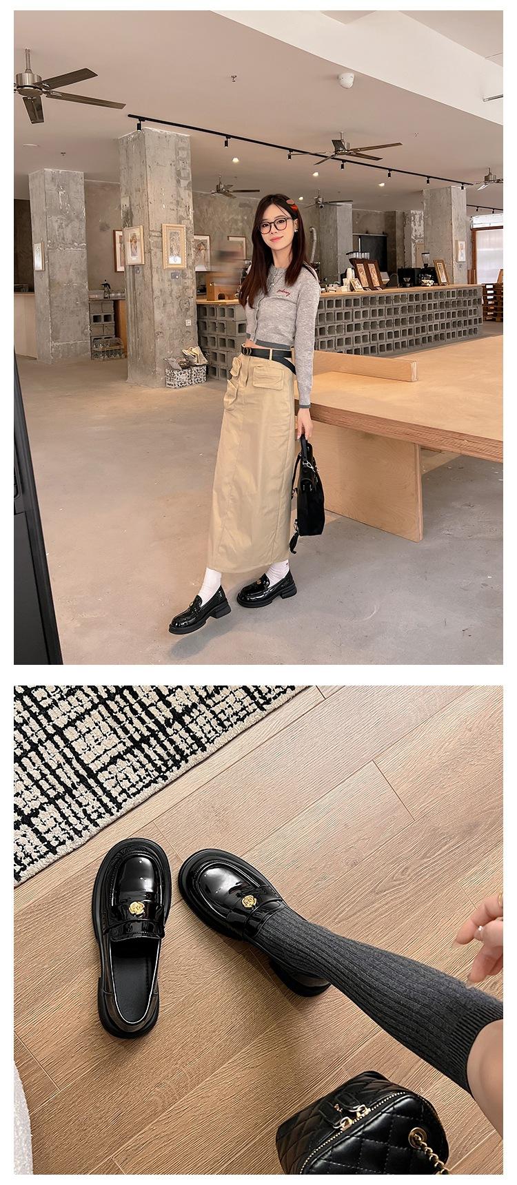 Mocasines negros de tacón grueso para otoño e invierno, zapatos británicos pequeños de cuero, zapatos sin cordones, zapatos de mujer de suela gruesa, cómodos y combinables.