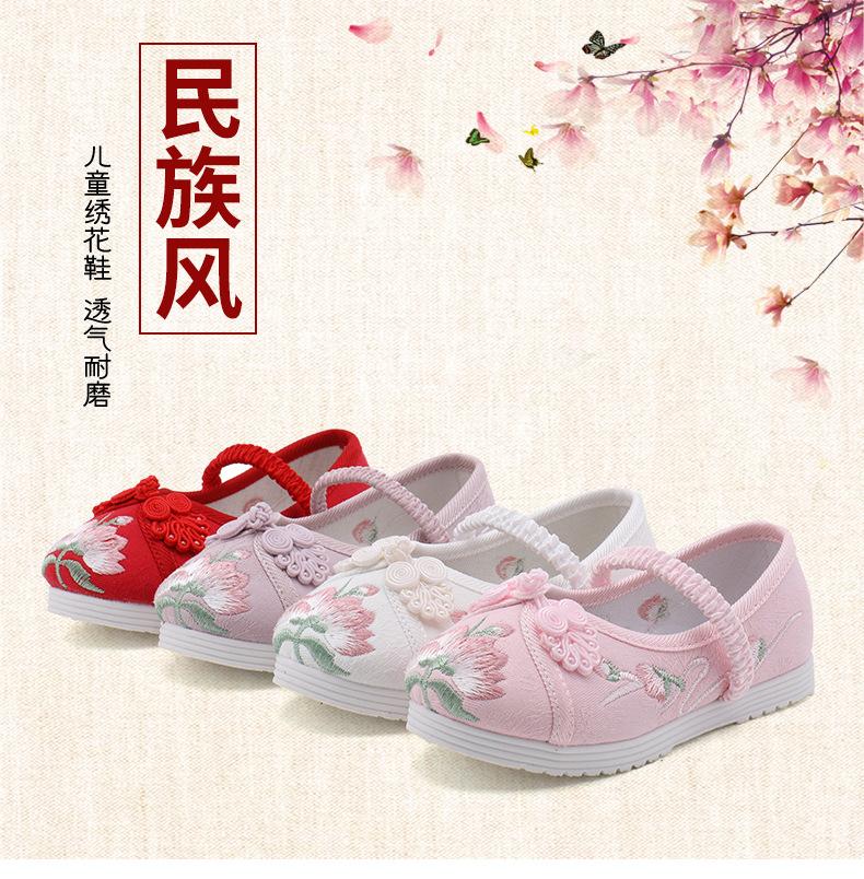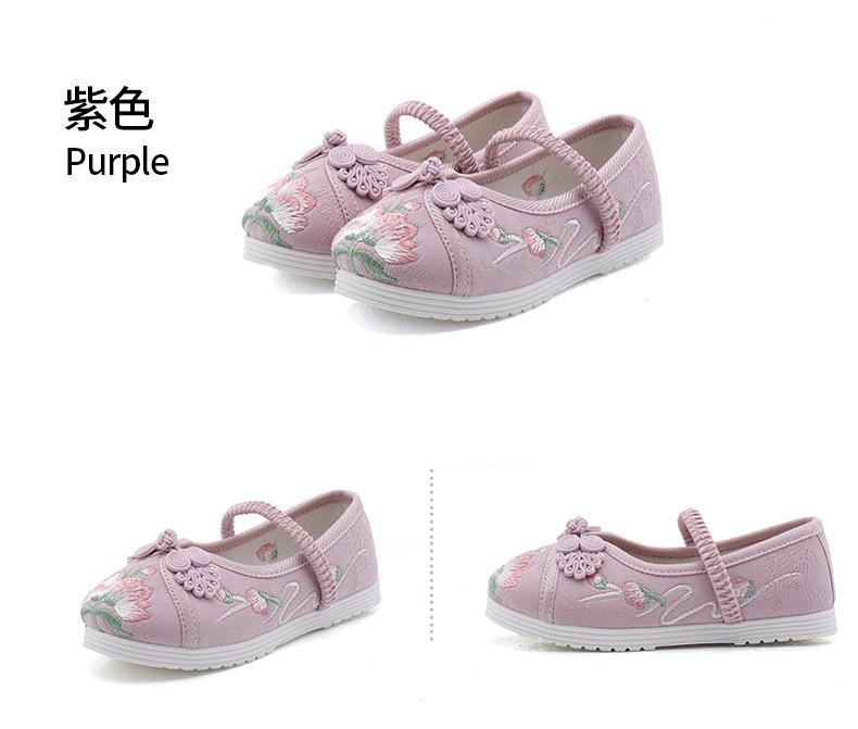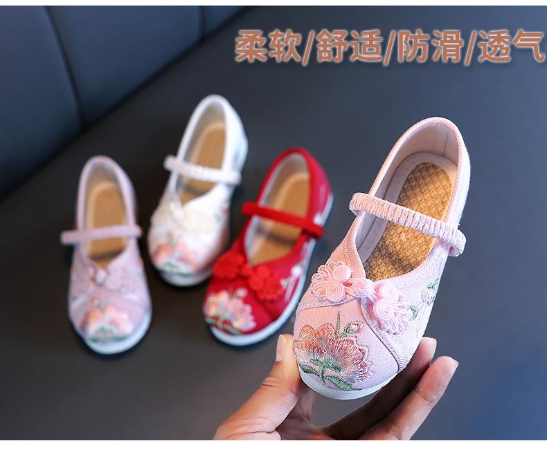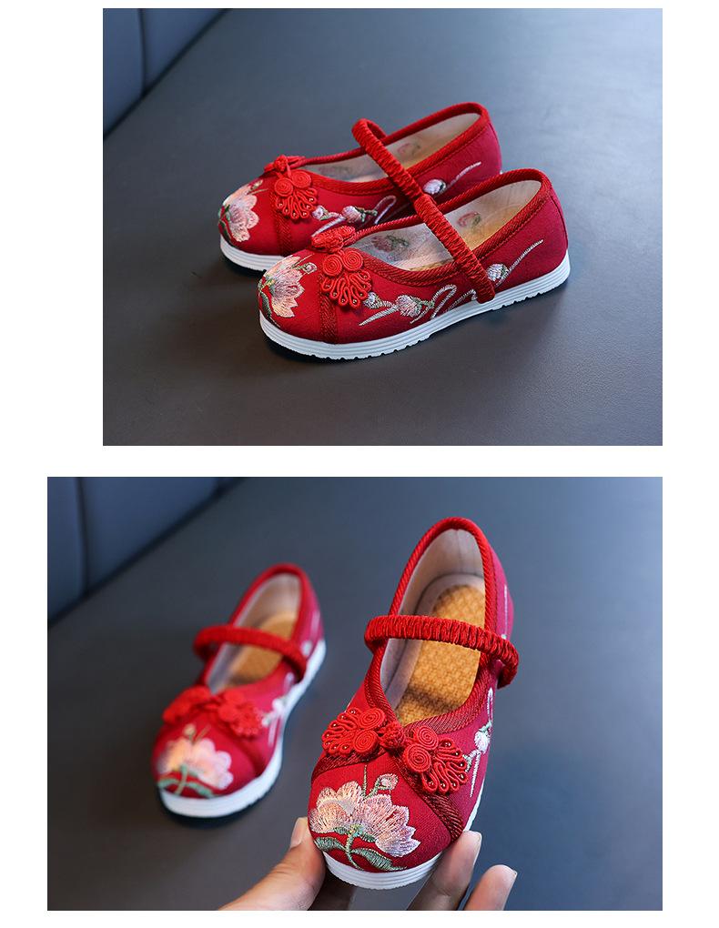 Zapatos Bordados para Niños, Zapatos de Estilo Étnico para Niñas de la Dinastía Han, Zapatos de Tela de Estilo Chino de Estilo Antiguo de Pekín, Zapatos de Falda de Caballo de Traje Antiguo