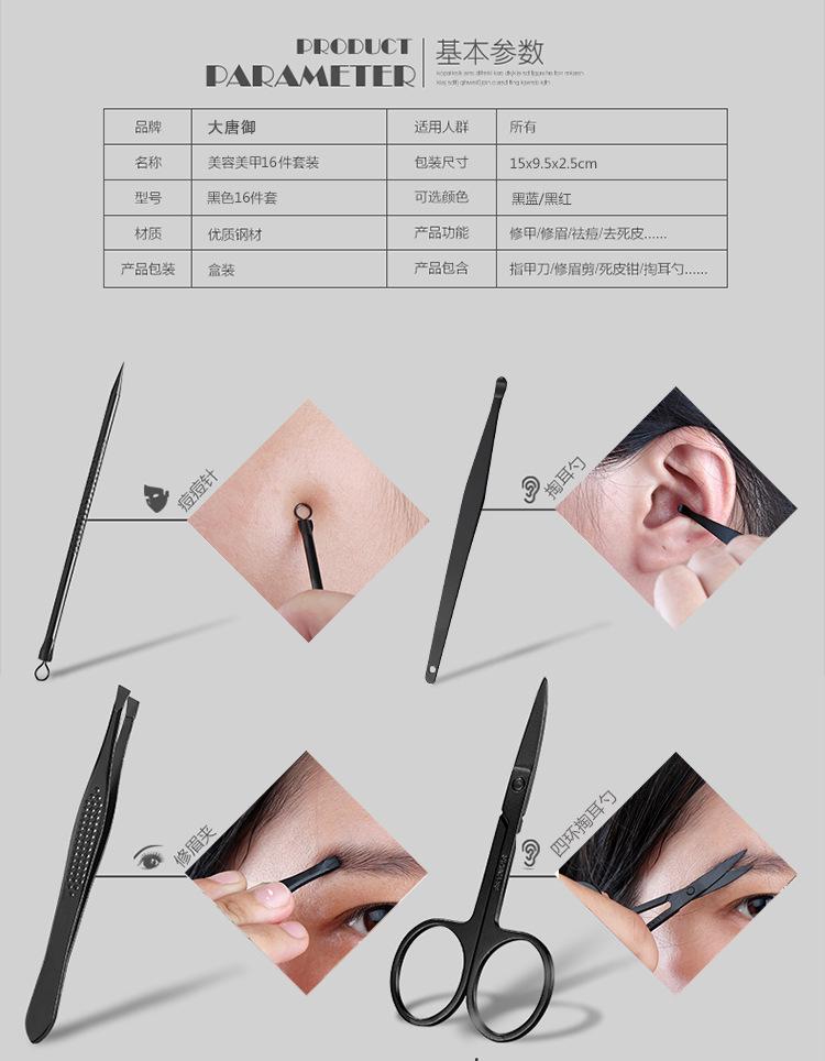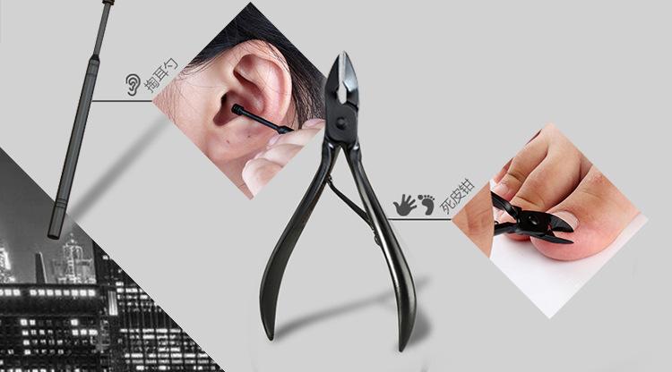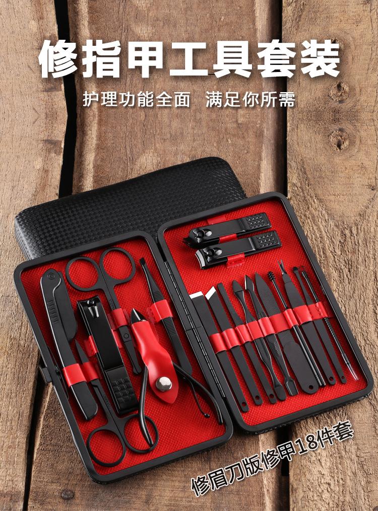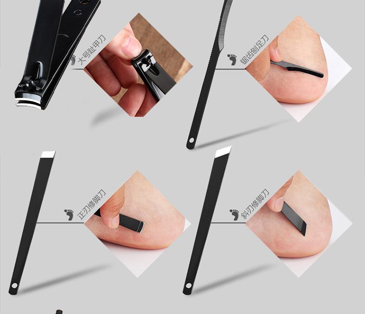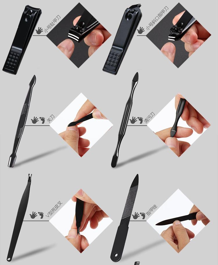 Cortaúñas negro, 18 piezas, cortaúñas, belleza, manicura, pedicura, trabajador, logotipo impreso
