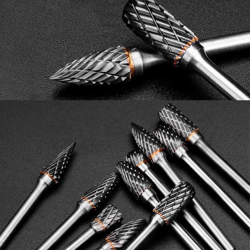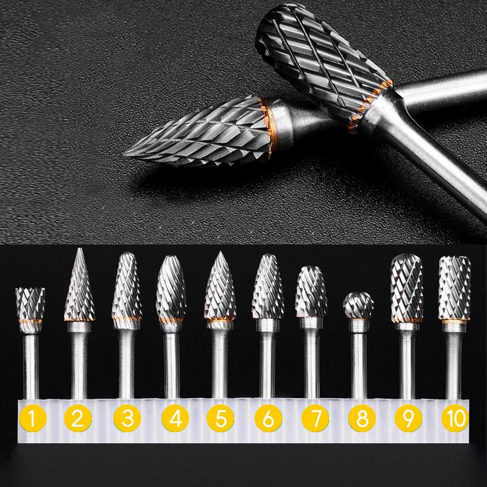 10 piezas en caja de carburo de tungsteno doble grano cabeza rotativa de rectificado 3 mm (1/8 de pulgada) Vástago carpintería tallado cabezal de rectificado fresa