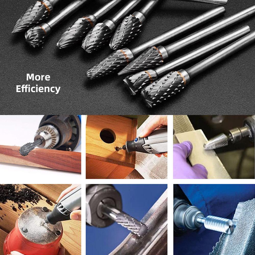 2. Todas las limas rotativas con vástago de 1/8" - compatibles con la mayoría de herramientas rotativas y rectificadoras de matriz.