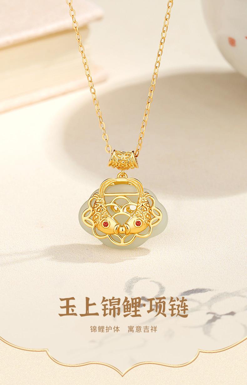 Compra Collar de Plata Esterlina S925 con Colgante de Carpa de Jade Hetian Natural para Mujer, Diseño de Gama Alta de Estilo Chino Nuevo, Regalo Nicho al por mayor en Joom.pro